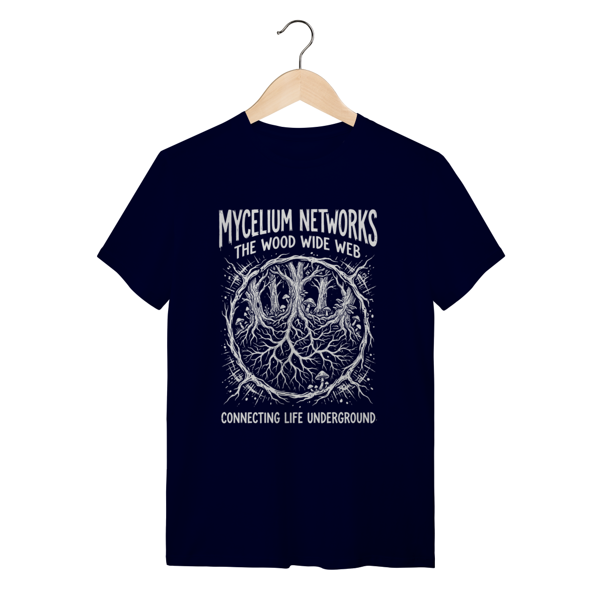 Você sabe que a natureza é muito mais complexa do que os olhos podem ver. Enquanto a maioria enxerga apenas árvores isoladas, você compreende a "Wood Wide Web" – a vasta rede micelial subterrânea que conecta, nutre e comunica a vida vegetal. Esta peça não é apenas roupa; é um atestado de inteligência biológica, celebrando a simbiose perfeita que sustenta o planeta. Vista a ciência e mostre que você entende o código fonte da floresta.