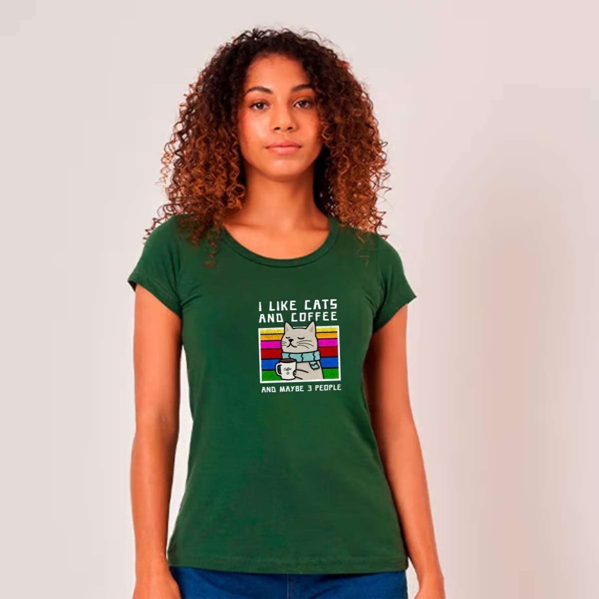 Baby Look I Like Cats and Coffee 100% Algodão, Várias Cores