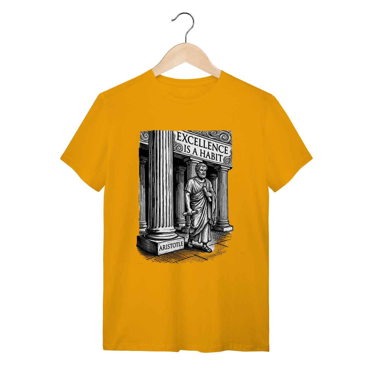 Excellence is a Habit (Vermelho/Rosa/Ouro): O filósofo no Liceu, lembrando que somos o que repetidamente fazemos.