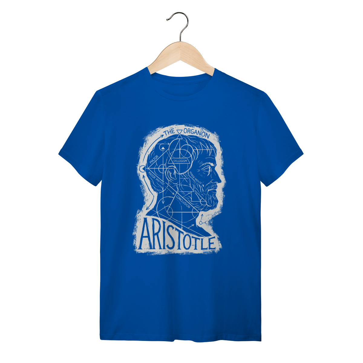 Inspirada na obra fundamental de Aristóteles, a arte da capa retrata a arquitetura da lógica formal: silogismos e deduções geométricas compondo o perfil do filósofo que ensinou o ocidente a pensar.