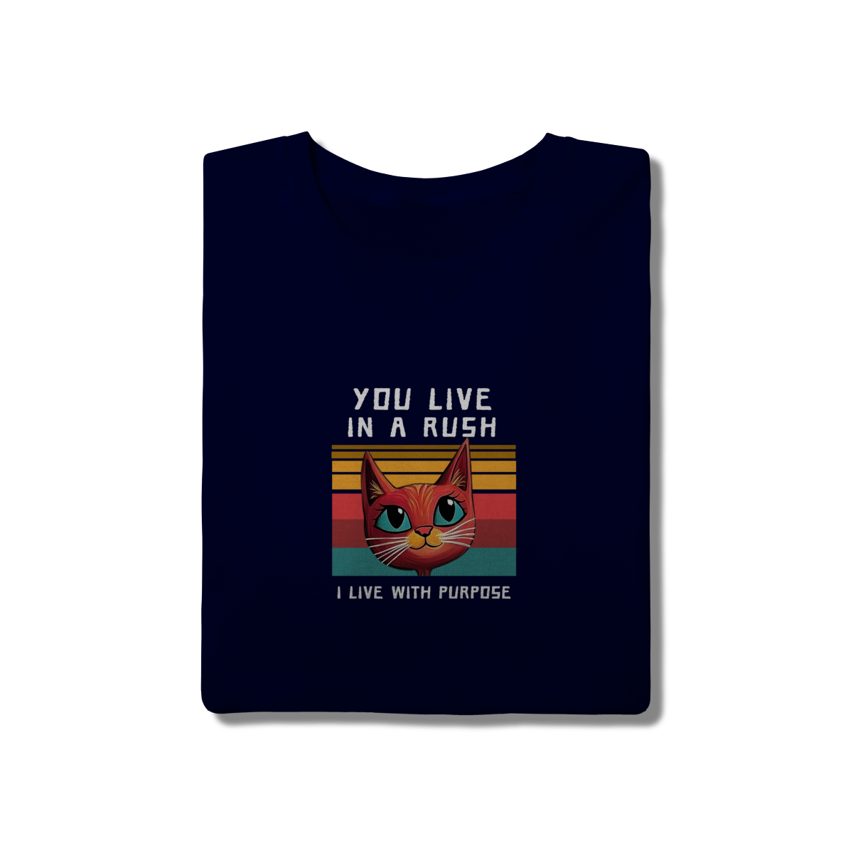 Camiseta Azul Marinho, Camiseta Azul, Gato Anti Stress, Slow Living, Estampa Criativa, Live With Purpose, Algodão 30.1, Camiseta Unissex, Quality Premium, Cat Lover, Roupa Confortável