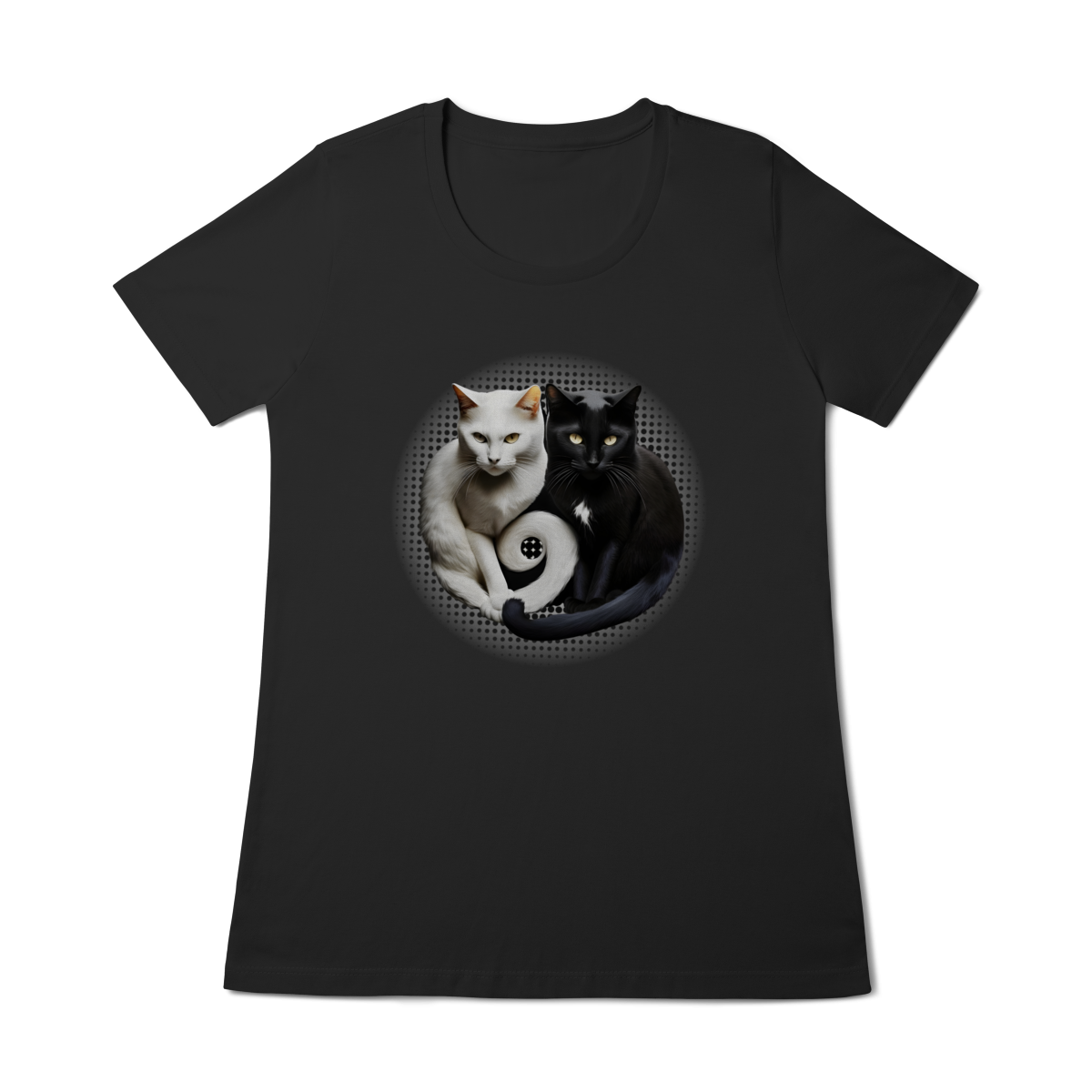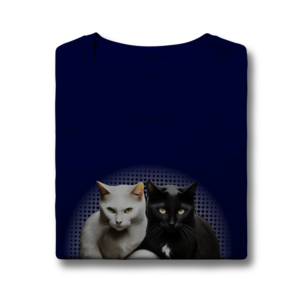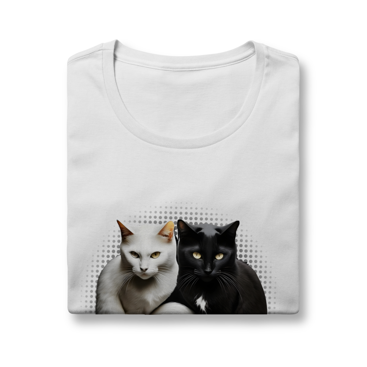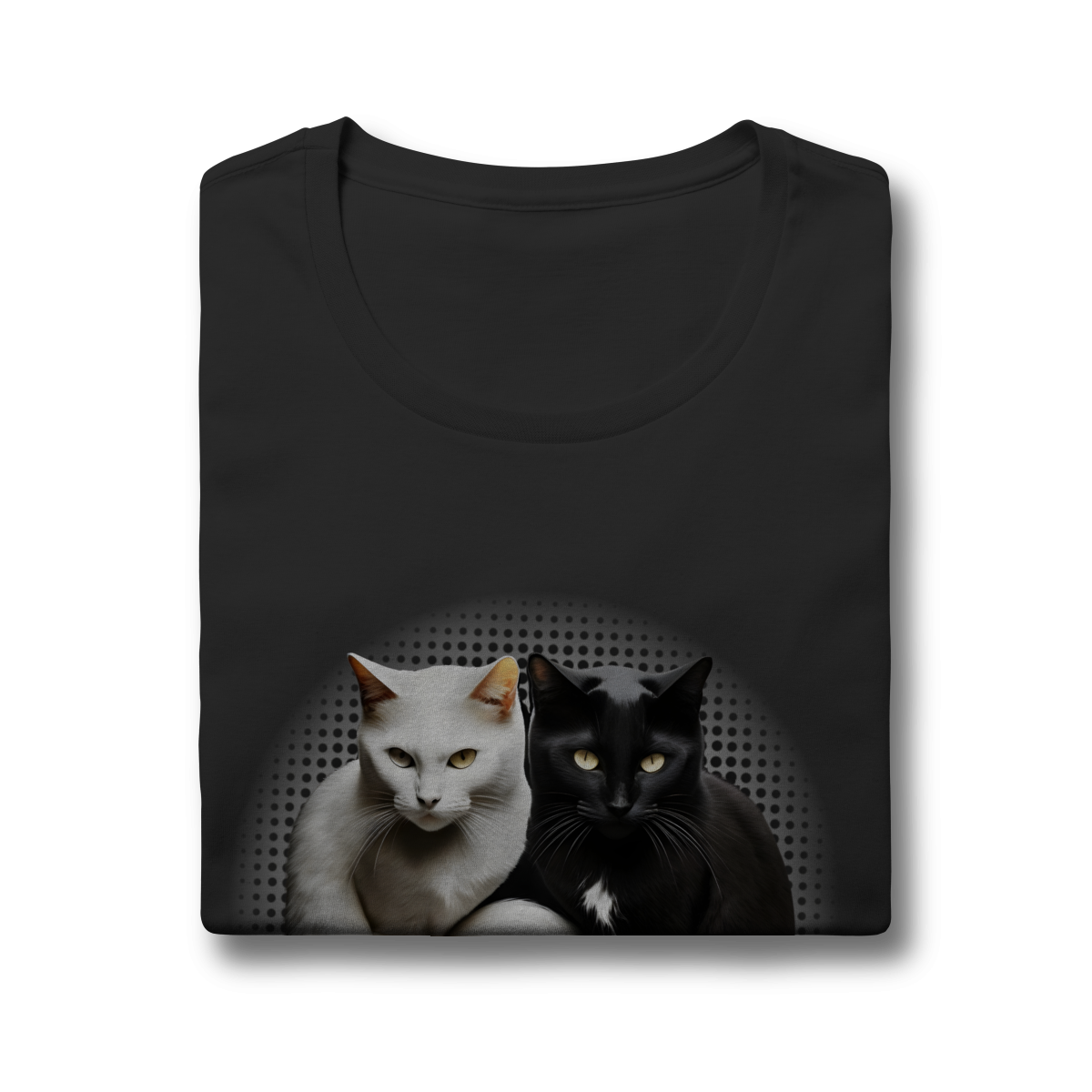 Estampa: Arte em alta definição do Símbolo Yin Yang, apresentando o contraste perfeito entre os gatos preto e branco. Representa o equilíbrio e a dualidade.
