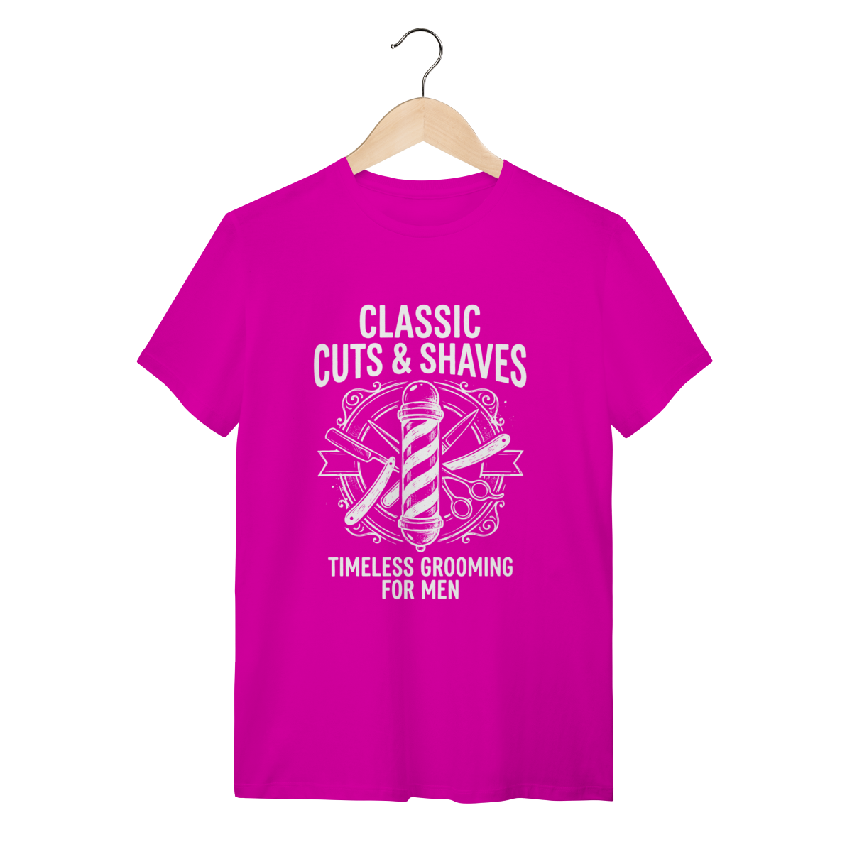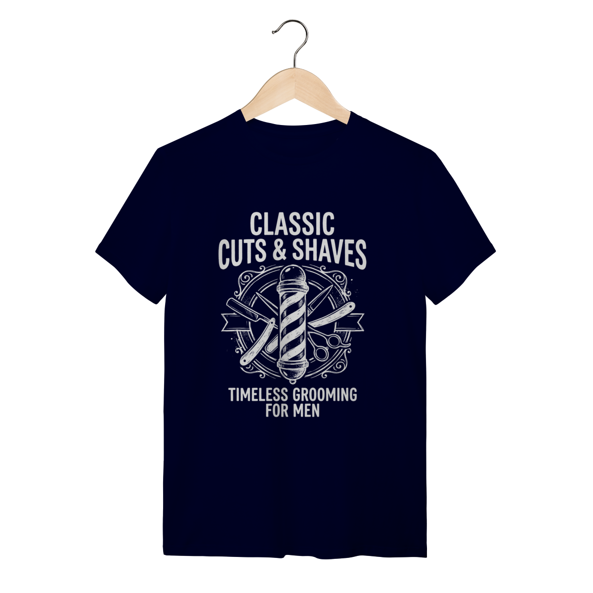 Mais do que um poste giratório, o Barber Pole é um ícone global que sinaliza um santuário masculino. Vestir esta peça é celebrar a "irmandade da navalha", onde a conversa é franca, o corte é arte e a tradição é sagrada. Esta estampa conecta você aos mestres da tesoura que mantêm a elegância viva em um mundo cada vez mais descuidado. Mostre que você valoriza o ritual do "Cabelo e Barba" feito à moda antiga.