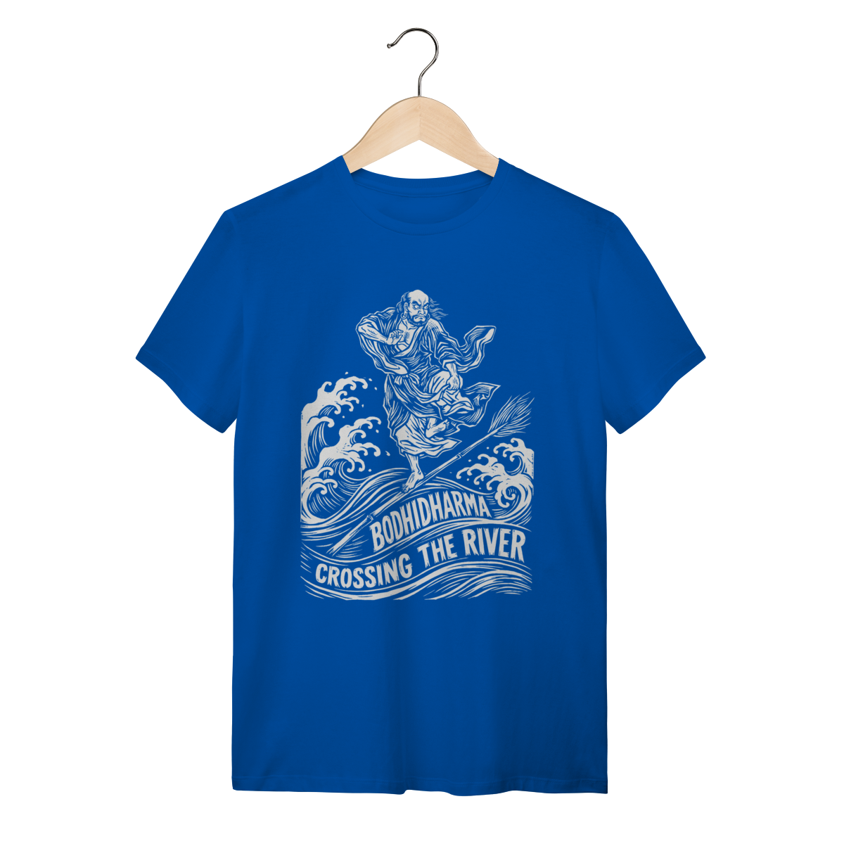 Crossing the River (Azul/Marinho): A lenda da travessia do Rio Yangtze sobre um junco.