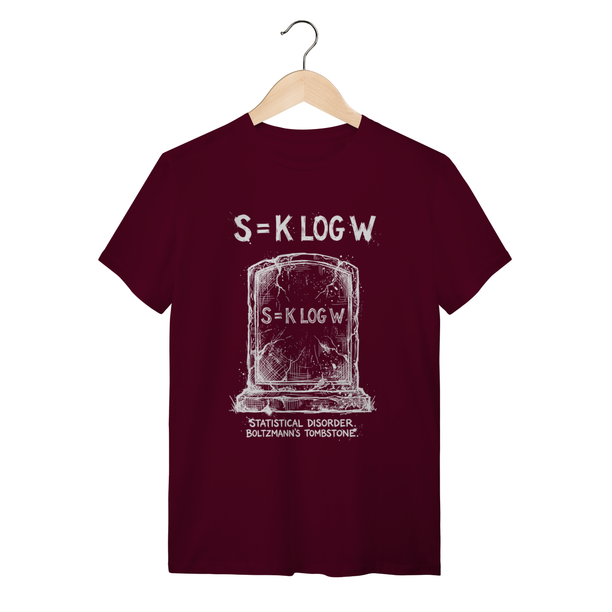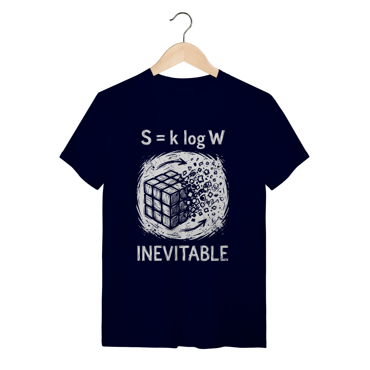 Esta estampa captura a elegância brutal dessa lei inevitável. Com traços de linocut e estética grunge, o design transforma a frieza da equação em uma declaração visual de complexidade. É a peça definitiva para quem entende que a Entropia não é pessimista, é a regra fundamental da realidade física.