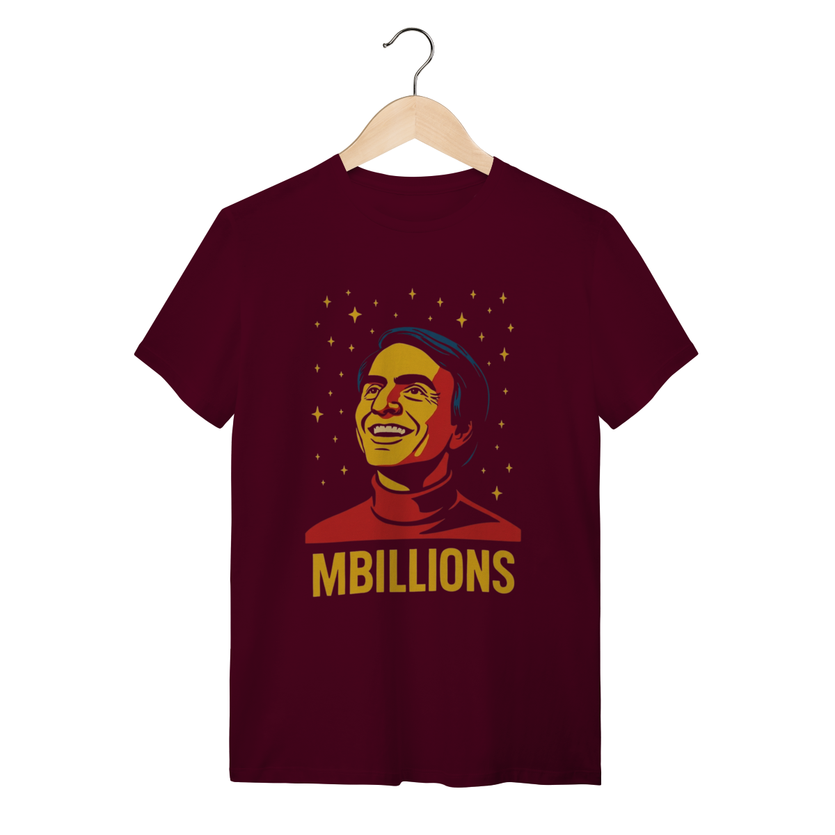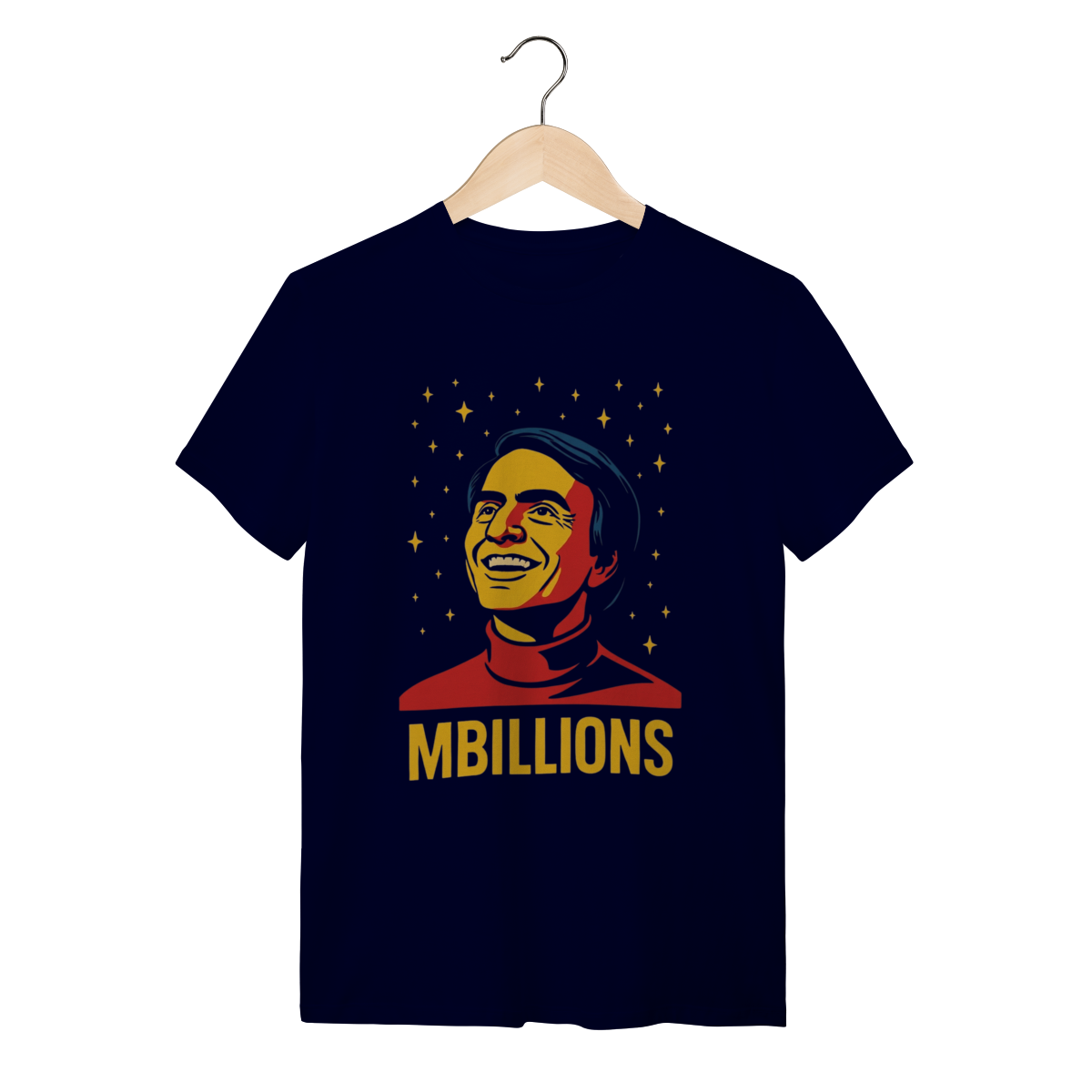 Nesta arte de Carl Sagan, o "M" em "MBILLIONS" é uma referência fonética à maneira marcante como ele pronunciava a palavra "billions" (bilhões).