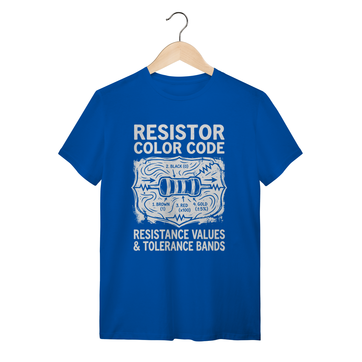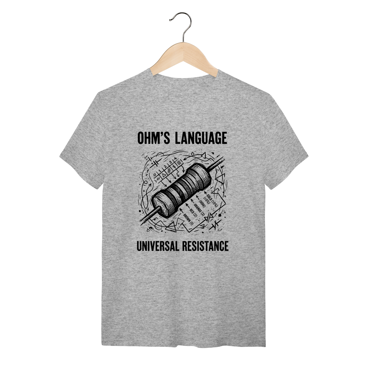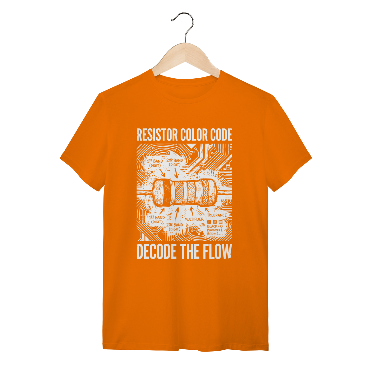 A base da eletrônica moderna em uma única peça. Este design apresenta o Código de Cores de Resistores com a estética crua e técnica de um diagrama de engenharia, isolando a lógica que controla a corrente elétrica. Uma homenagem visual à precisão e ao fundamento de todos os circuitos.