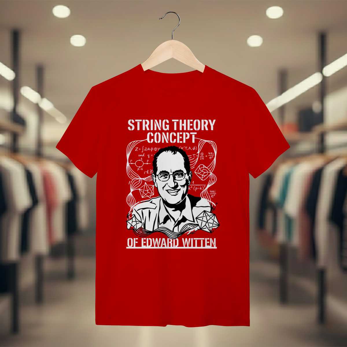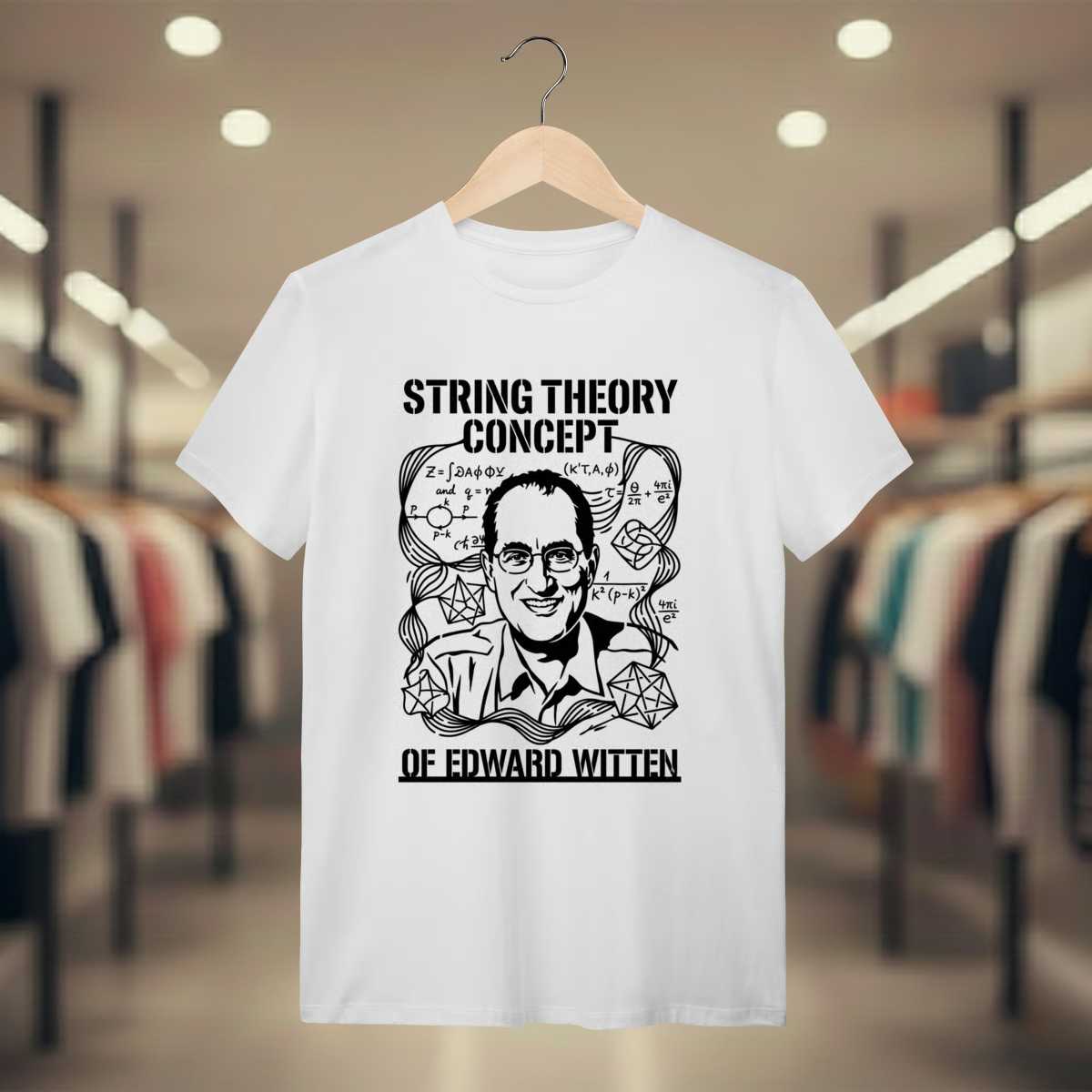 Por que esta peça? Criada para quem reconhece o intelecto raríssimo de Witten. Mais que uma estampa, é uma sinalização de pertencimento ao mais alto nível da física teórica e da topologia matemática.