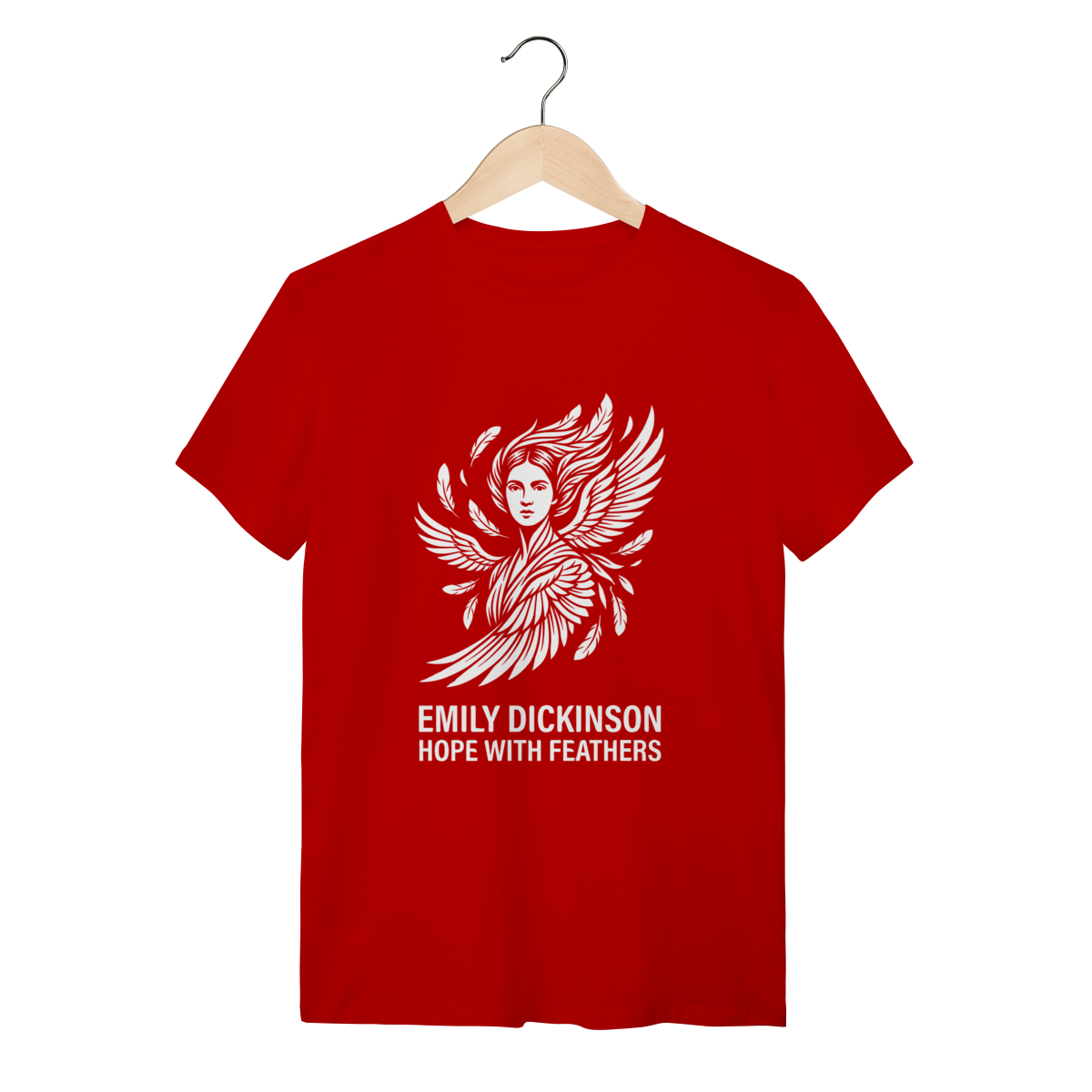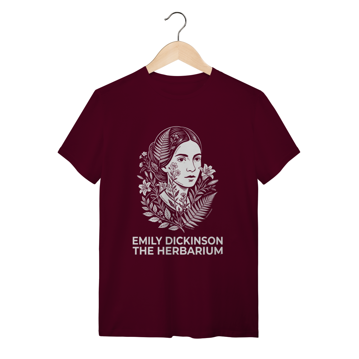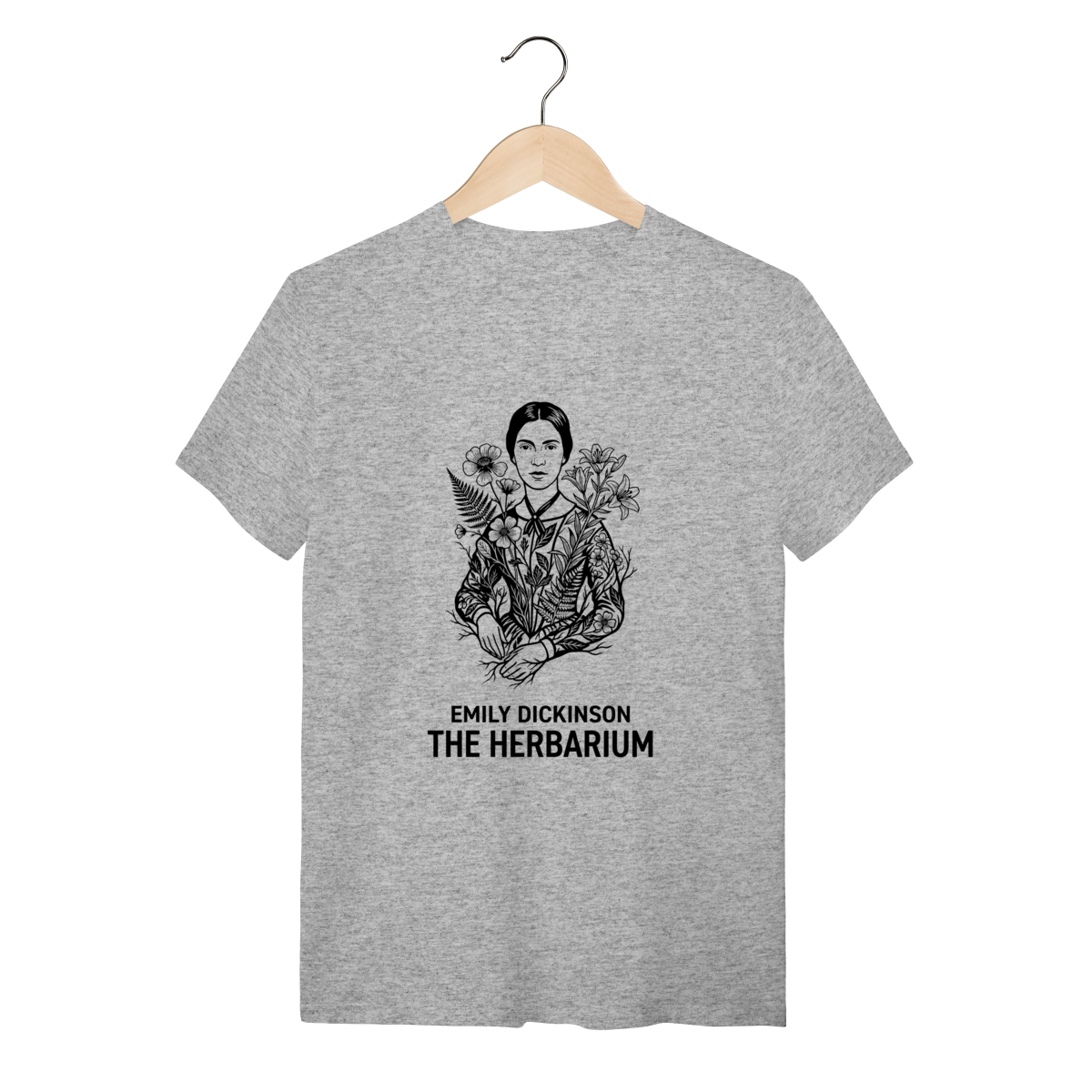 Esta estampa é o símbolo da força interior. Inspirada na reclusa mais famosa da literatura, a arte da capa (Rosa) captura a figura etérea de Emily Dickinson: o daguerreótipo icônico estilizado, representando a mulher que, de dentro de seu quarto em Amherst, reescreveu a poesia mundial. A cor rosa traz uma leitura contemporânea e "Cottagecore", suavizando o peso histórico e celebrando a feminilidade intelectual. Ao vestir esta peça, você carrega o mistério e a genialidade daquela que viveu em segredo e escreveu para a eternidade.
