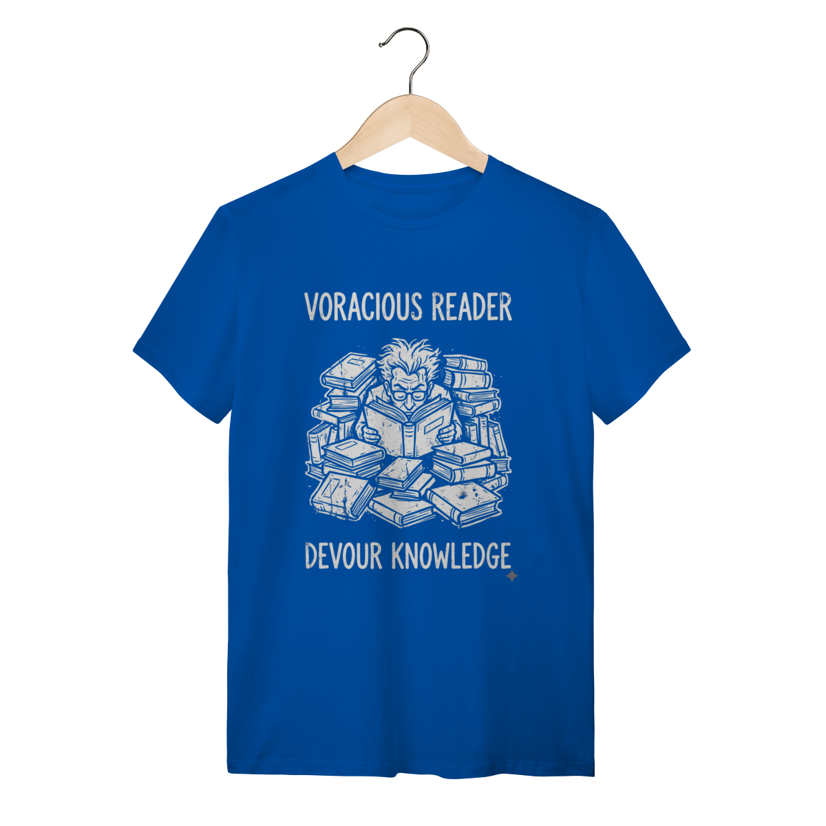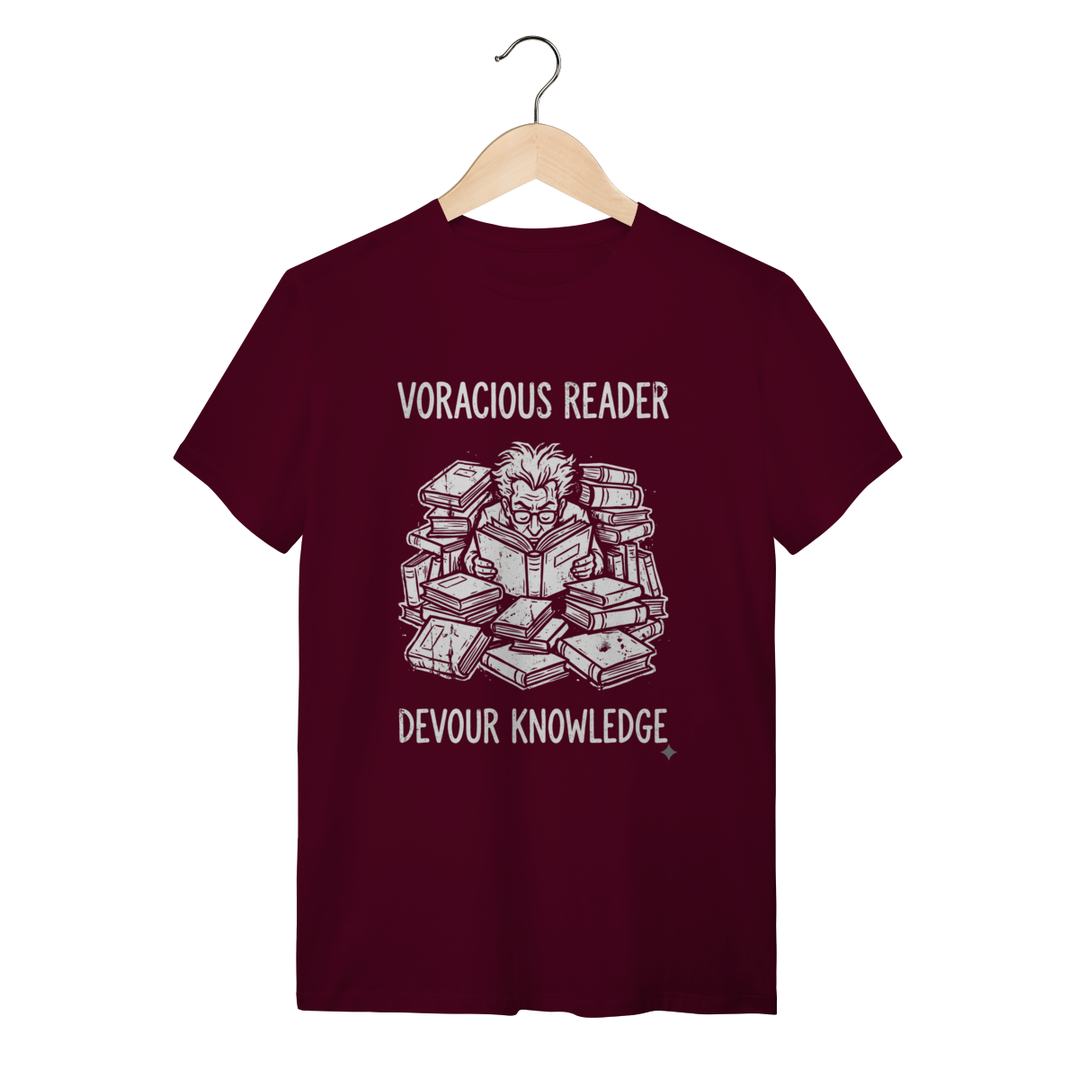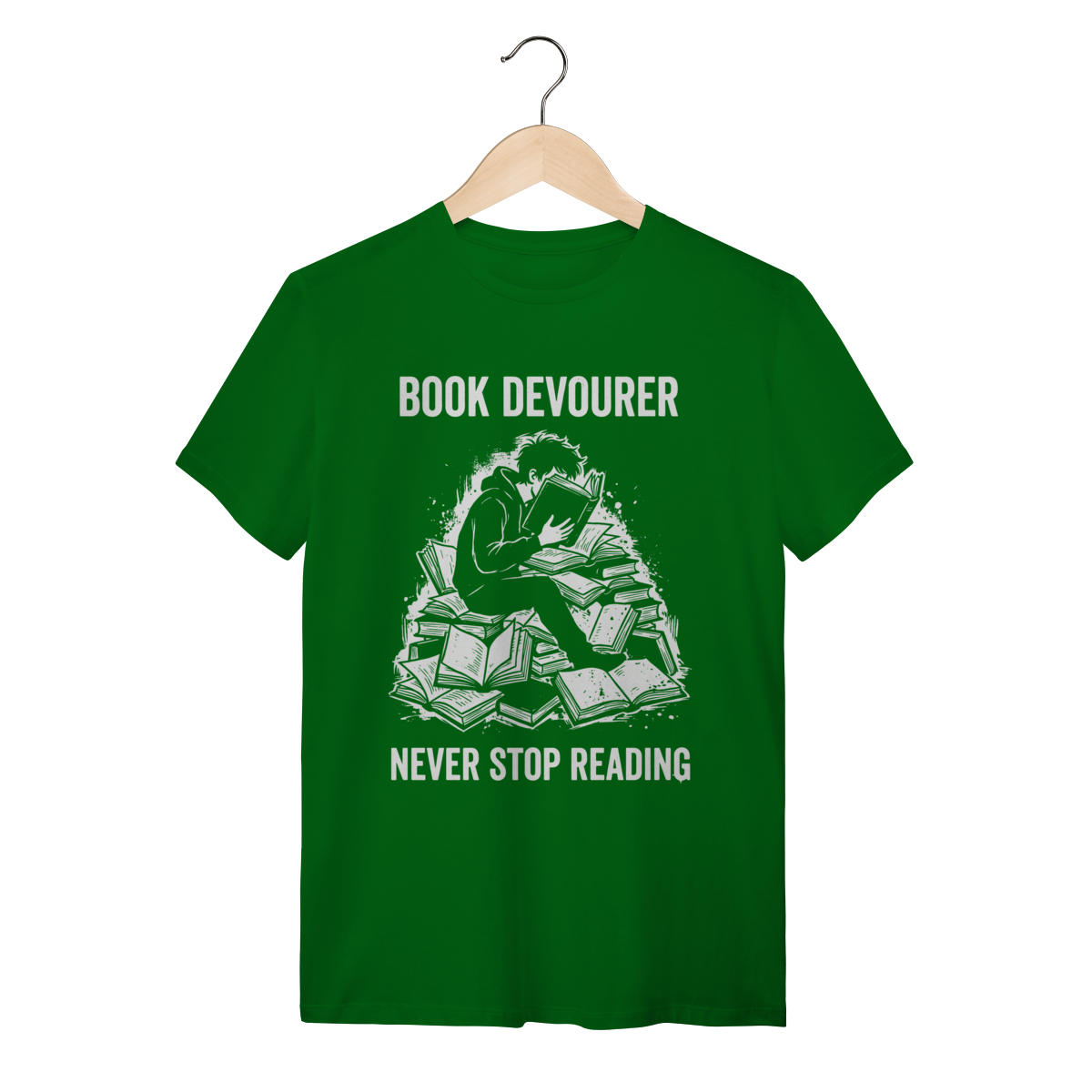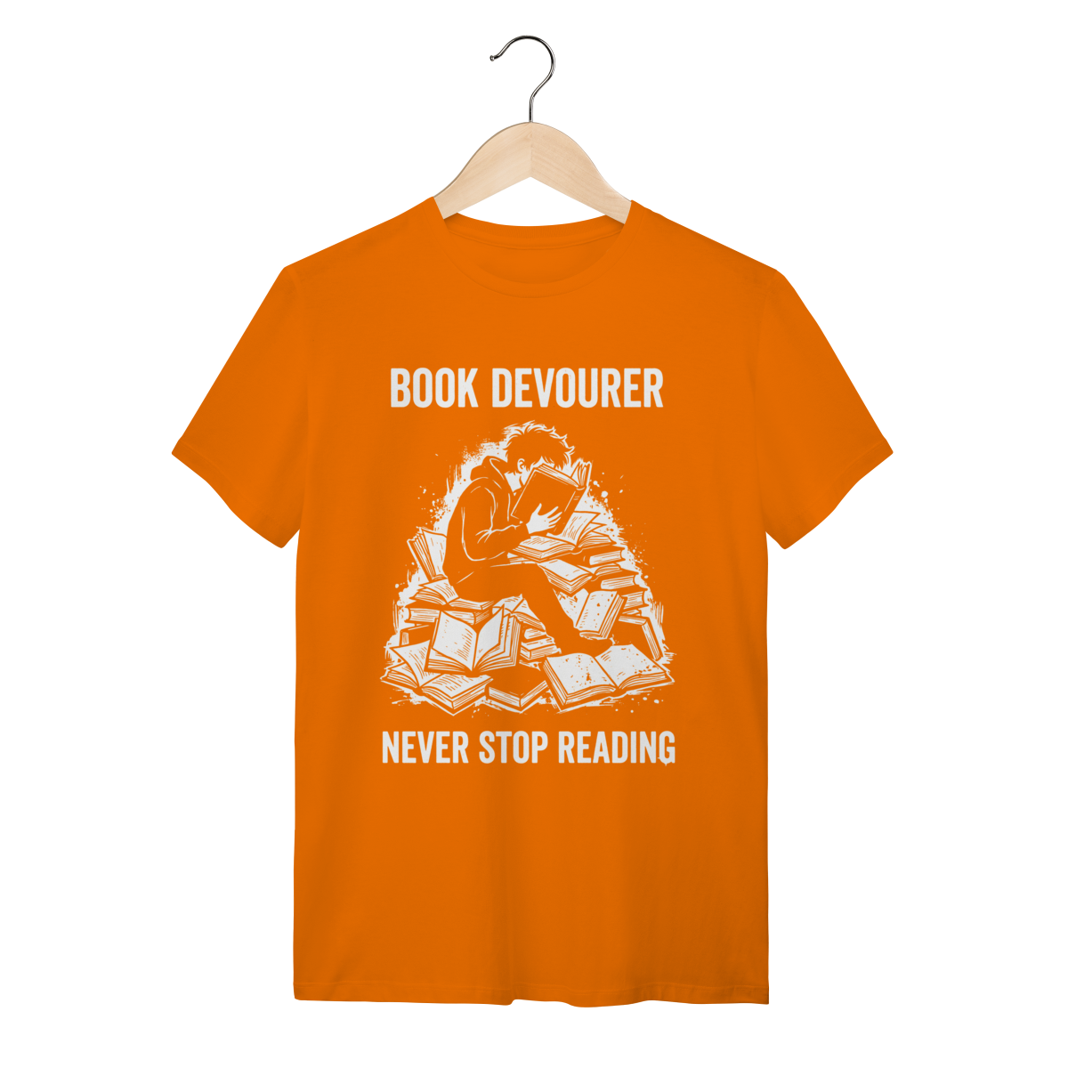 Ler não é apenas um passatempo, é uma necessidade vital. Esta estampa captura a essência daquele que encontra nos livros o alimento para a alma e para a mente. Mostre ao mundo que sua sede de saber é insaciável e vista o orgulho de ser um verdadeiro "Book Eater".