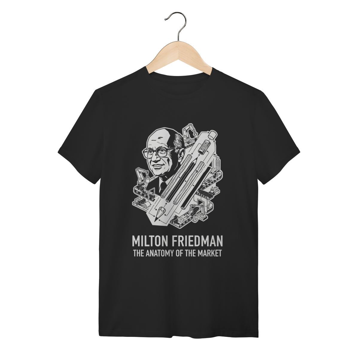 Esta estampa é o mapa estrutural da macroeconomia moderna. Inspirada na mente brilhante da Escola de Chicago, a arte da capa (Vinho) captura a essência de Milton Friedman: o retrato clássico fundido a curvas de oferta, demanda e a matemática pura do monetarismo. Ele não oferecia promessas populistas; ele oferecia a dura e irrefutável ciência dos números. Ao vestir esta peça, você carrega a âncora do pensamento econômico livre e a defesa irrestrita da liberdade de escolha.