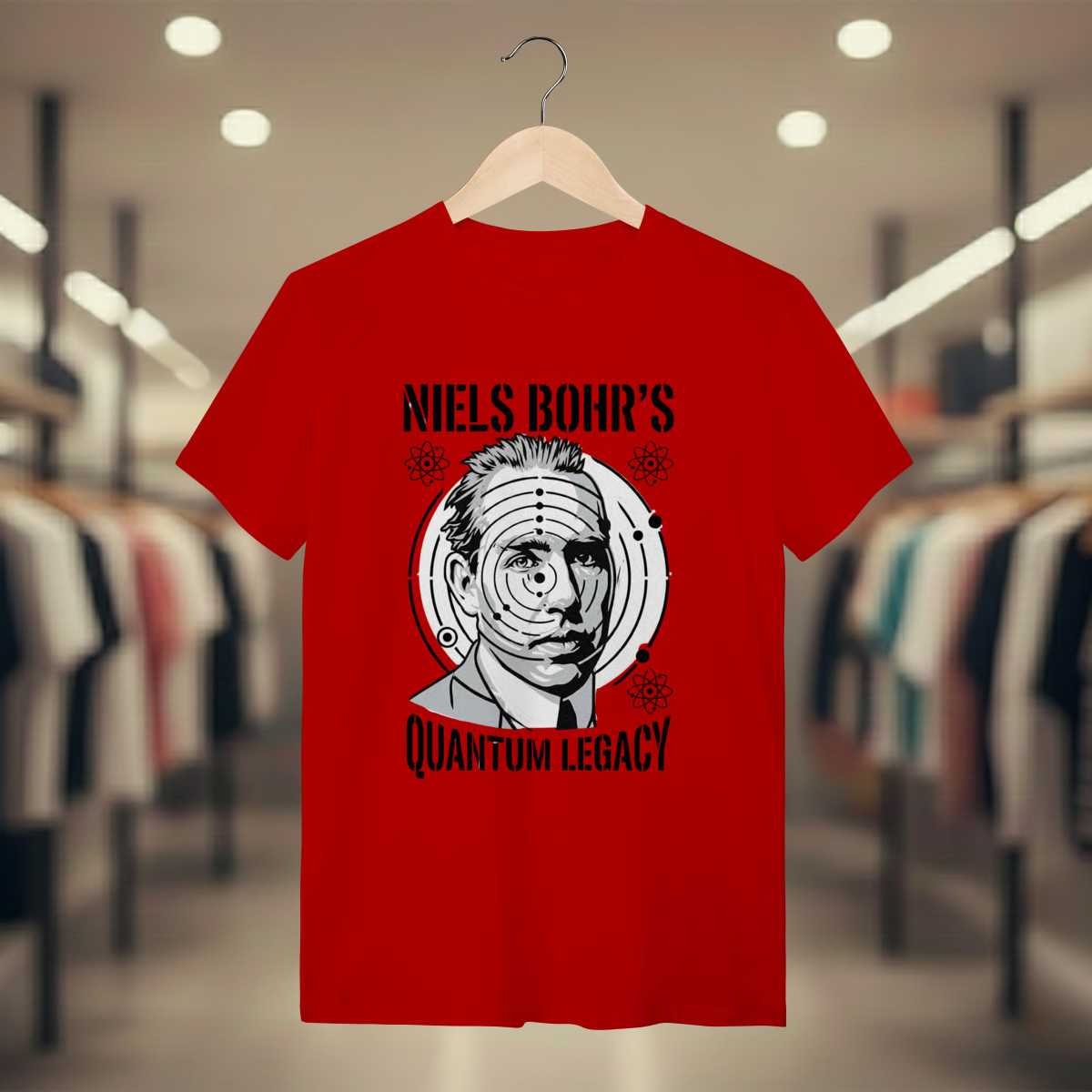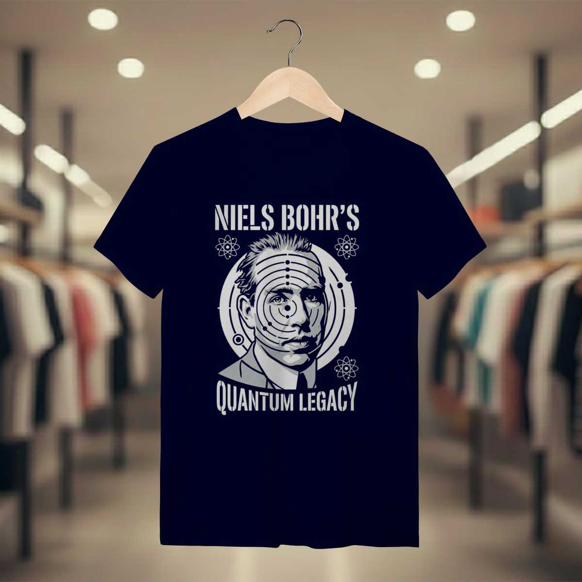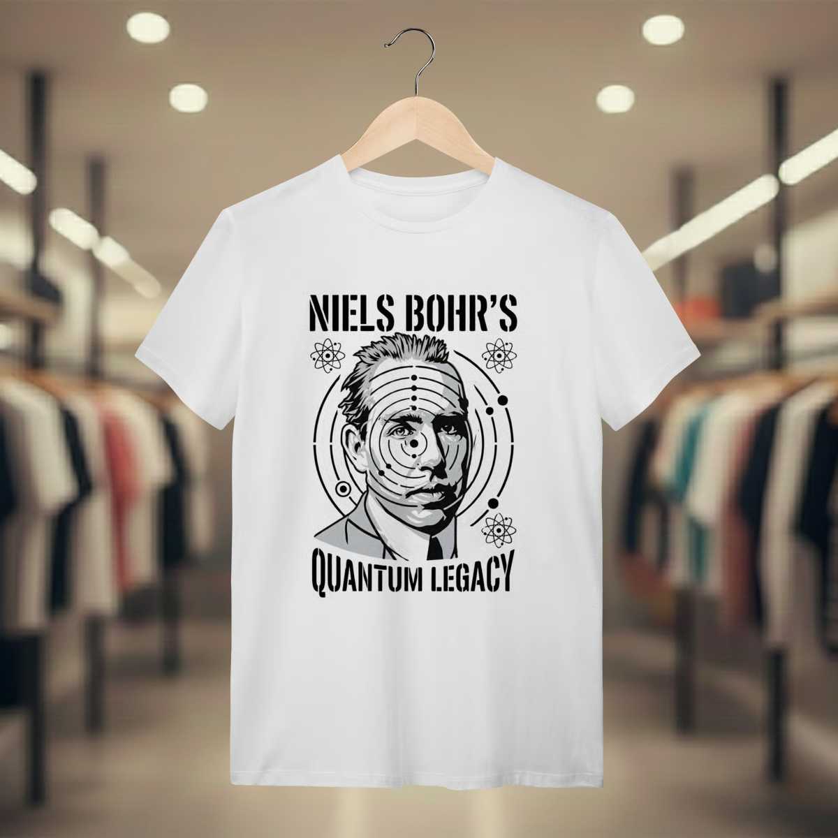 O Conceito: Esta estampa celebra o marco onde Niels Bohr uniu a física clássica à quântica. Um design técnico para quem entende que os elétrons não orbitam ao acaso, mas em níveis de energia definidos.