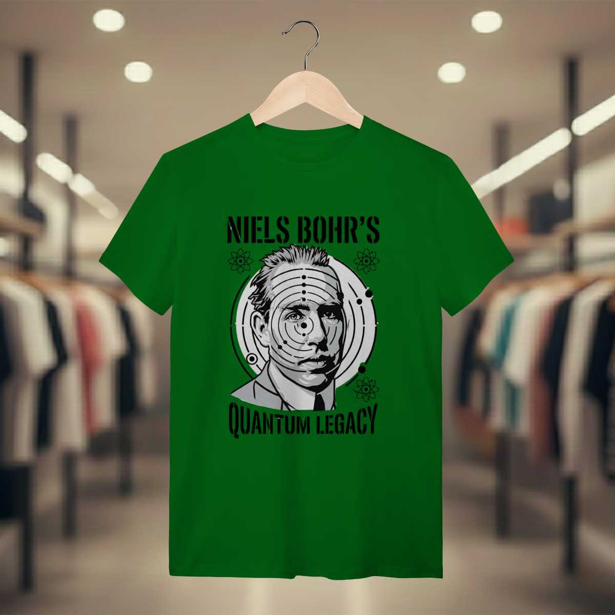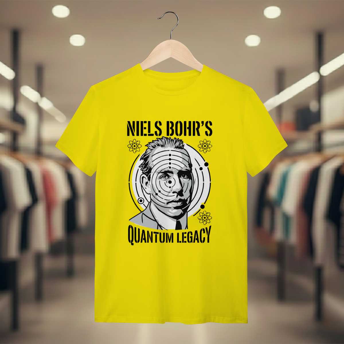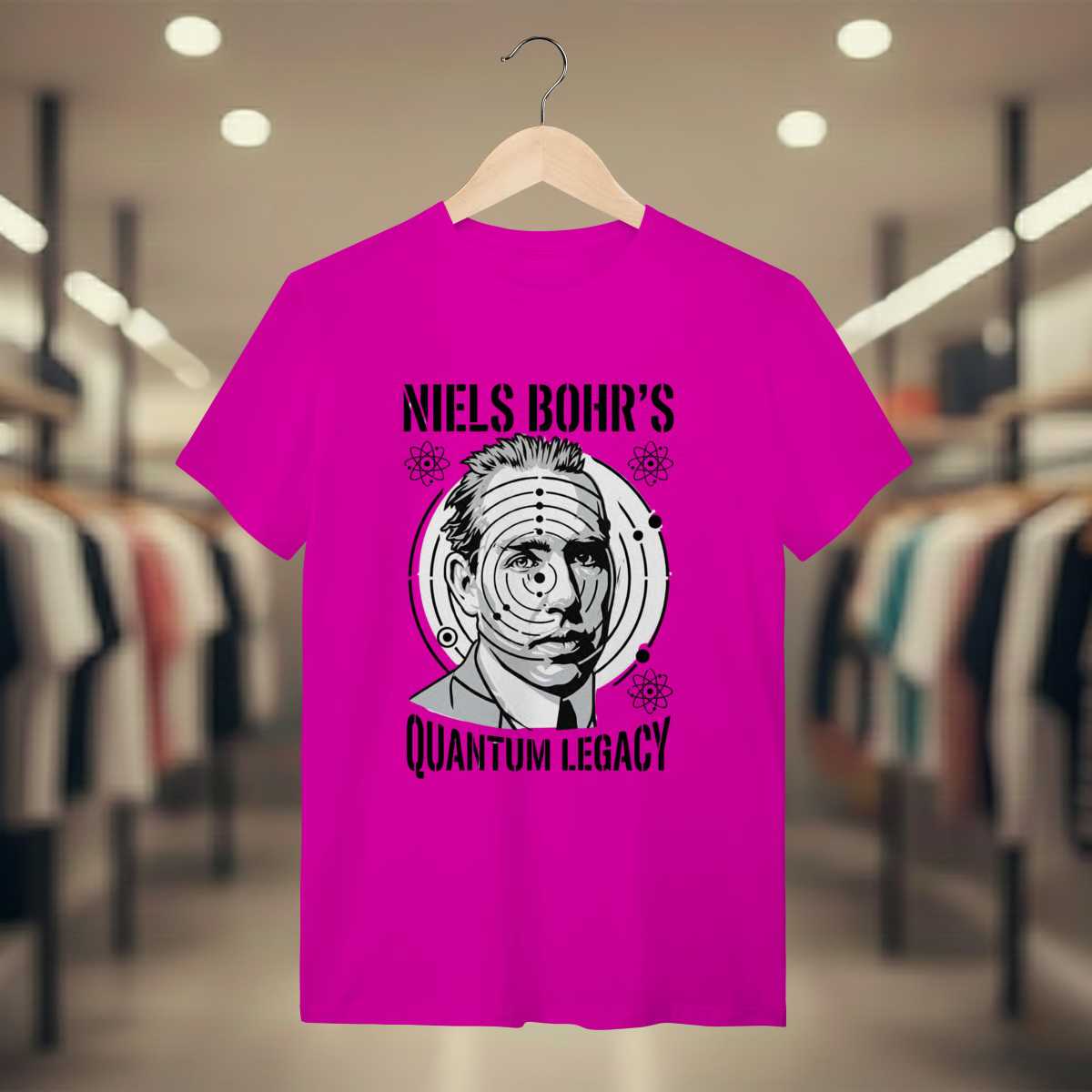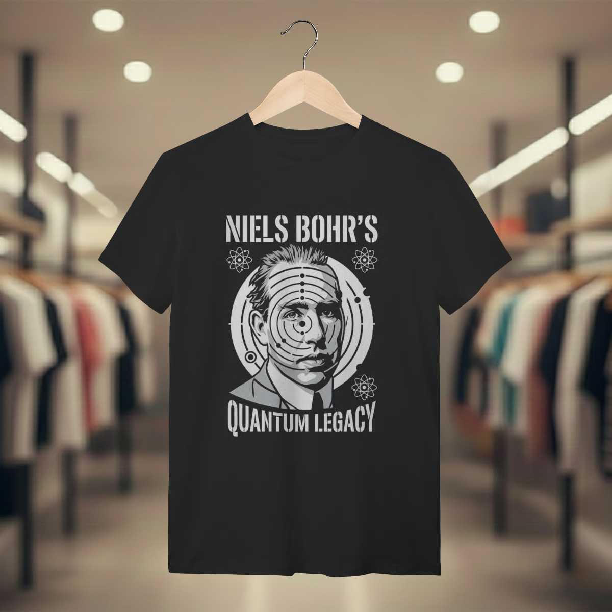 O Conceito: Esta estampa celebra o marco onde Niels Bohr uniu a física clássica à quântica. Um design técnico para quem entende que os elétrons não orbitam ao acaso, mas em níveis de energia definidos.