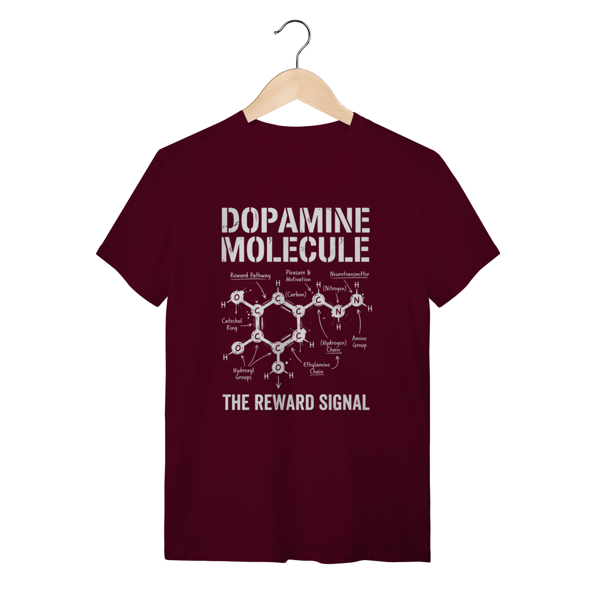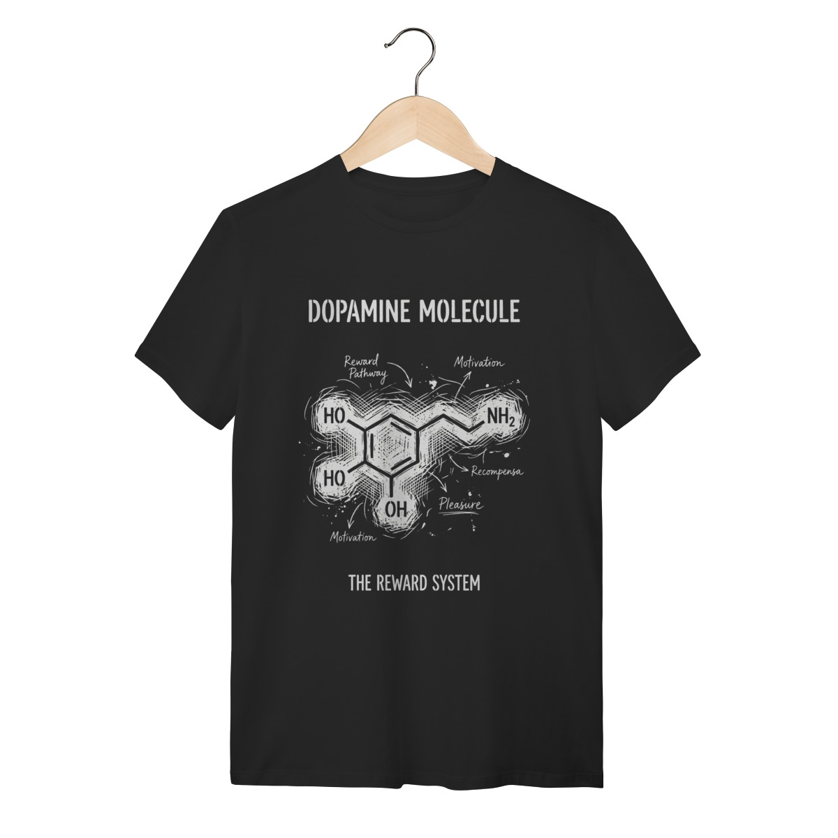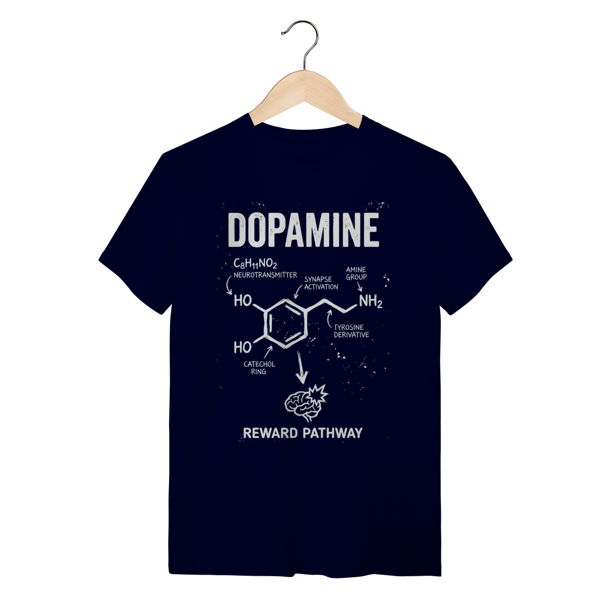A dopamina não é apenas um neurotransmissor; é o combustível da motivação, do foco e da conquista. Usar esta peça é sinalizar ao mundo que você entende o que te move. É a escolha perfeita para quem é guiado por objetivos, para estudantes da mente humana e para quem sabe que a verdadeira recompensa vem do esforço. Mostre que sua "vibe" tem base científica.