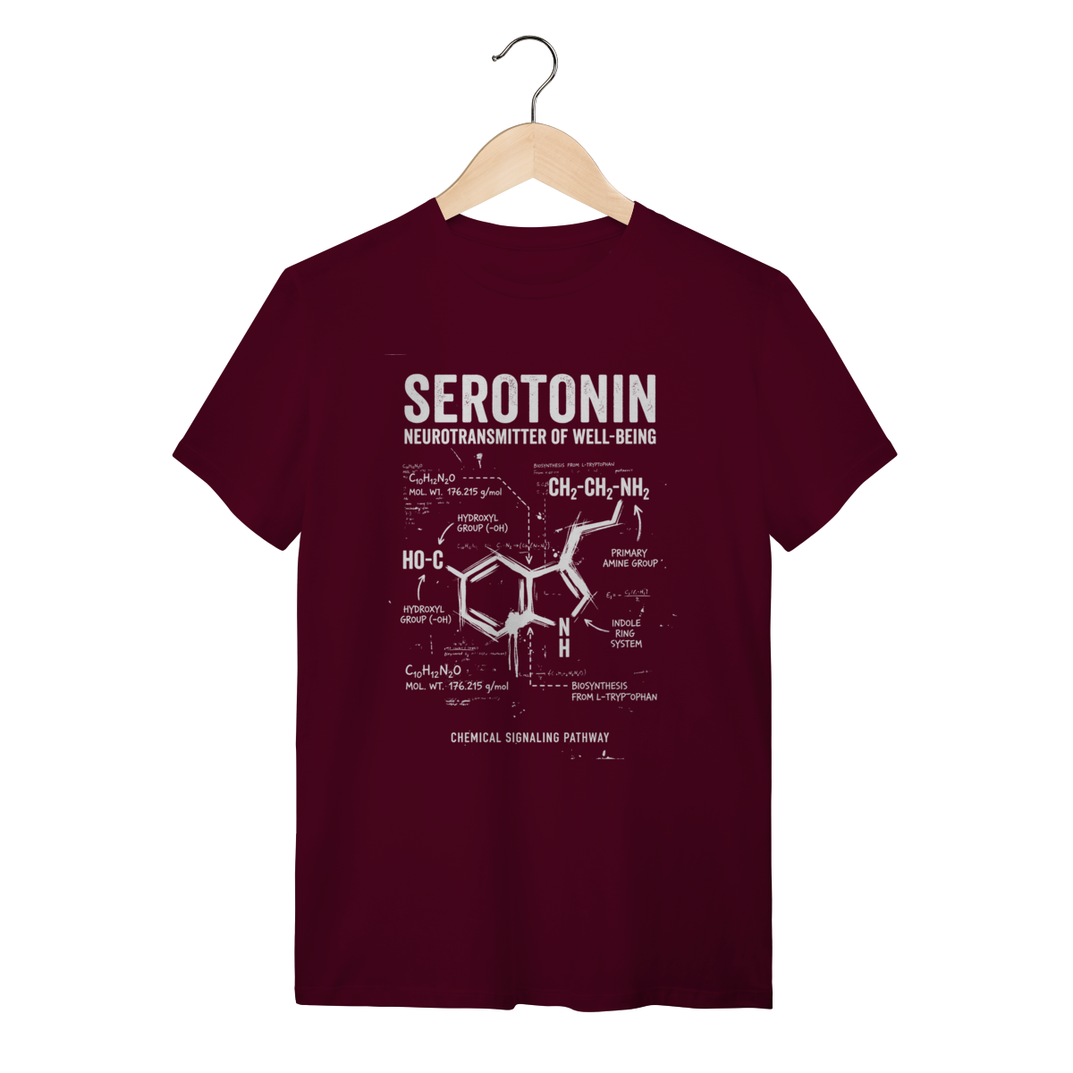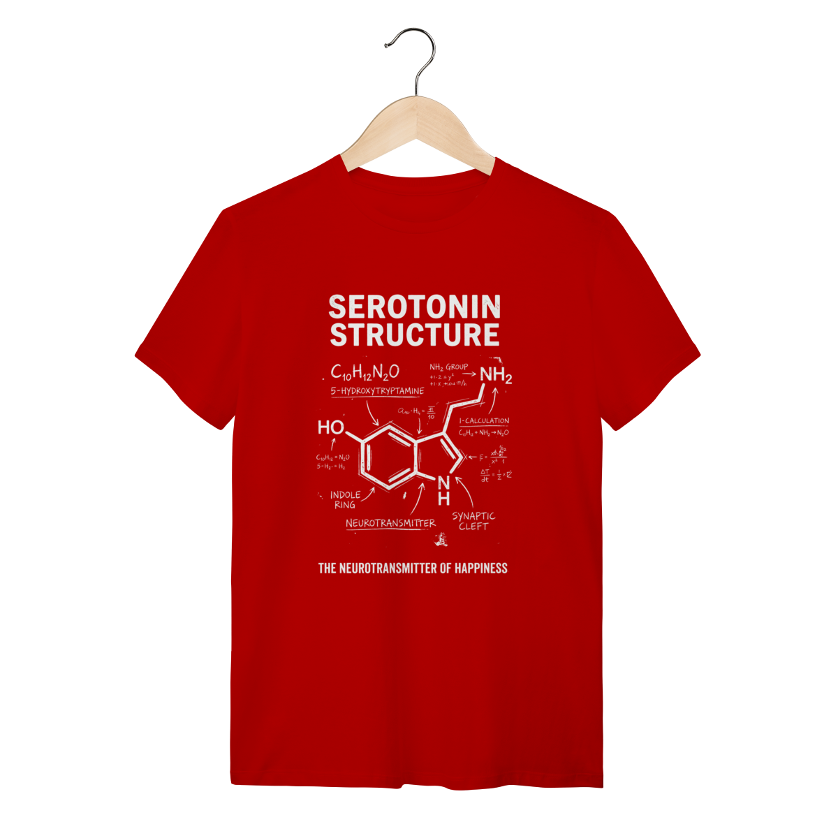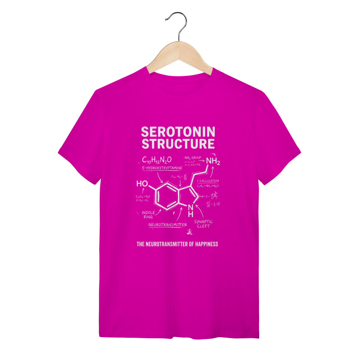 Você não precisa explicar o que te faz feliz; você carrega a fórmula no peito. Esta peça não é apenas sobre química, é sobre entender os mecanismos profundos que regem a mente humana. Ao vestir a serotonina, você se conecta instantaneamente a um clube exclusivo de intelectuais, cientistas, estudantes e entusiastas que valorizam o conhecimento acima da média. É a representação visual da alegria, da estabilidade e da inteligência, perfeita para quem sabe que a verdadeira felicidade é uma reação química complexa e fascinante.