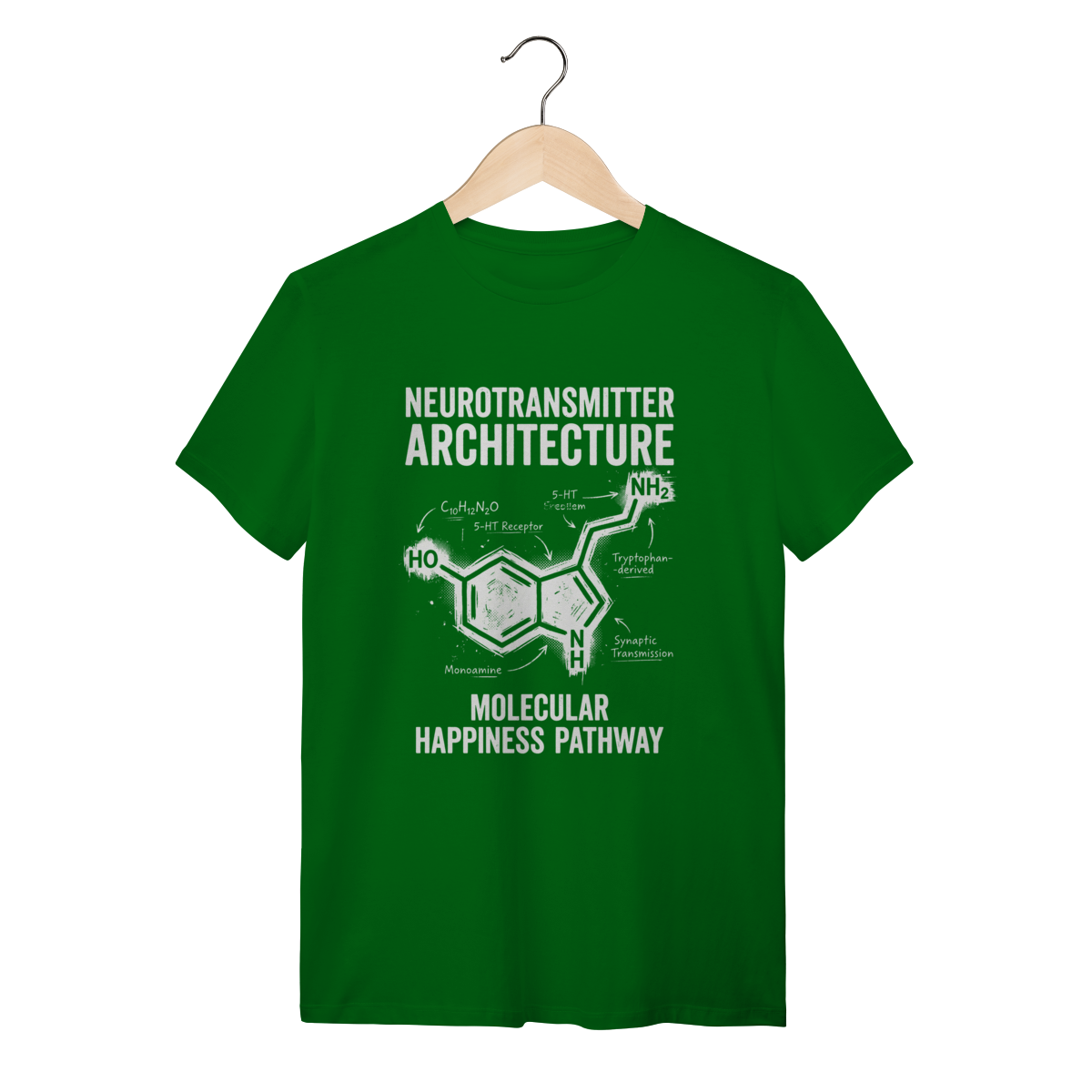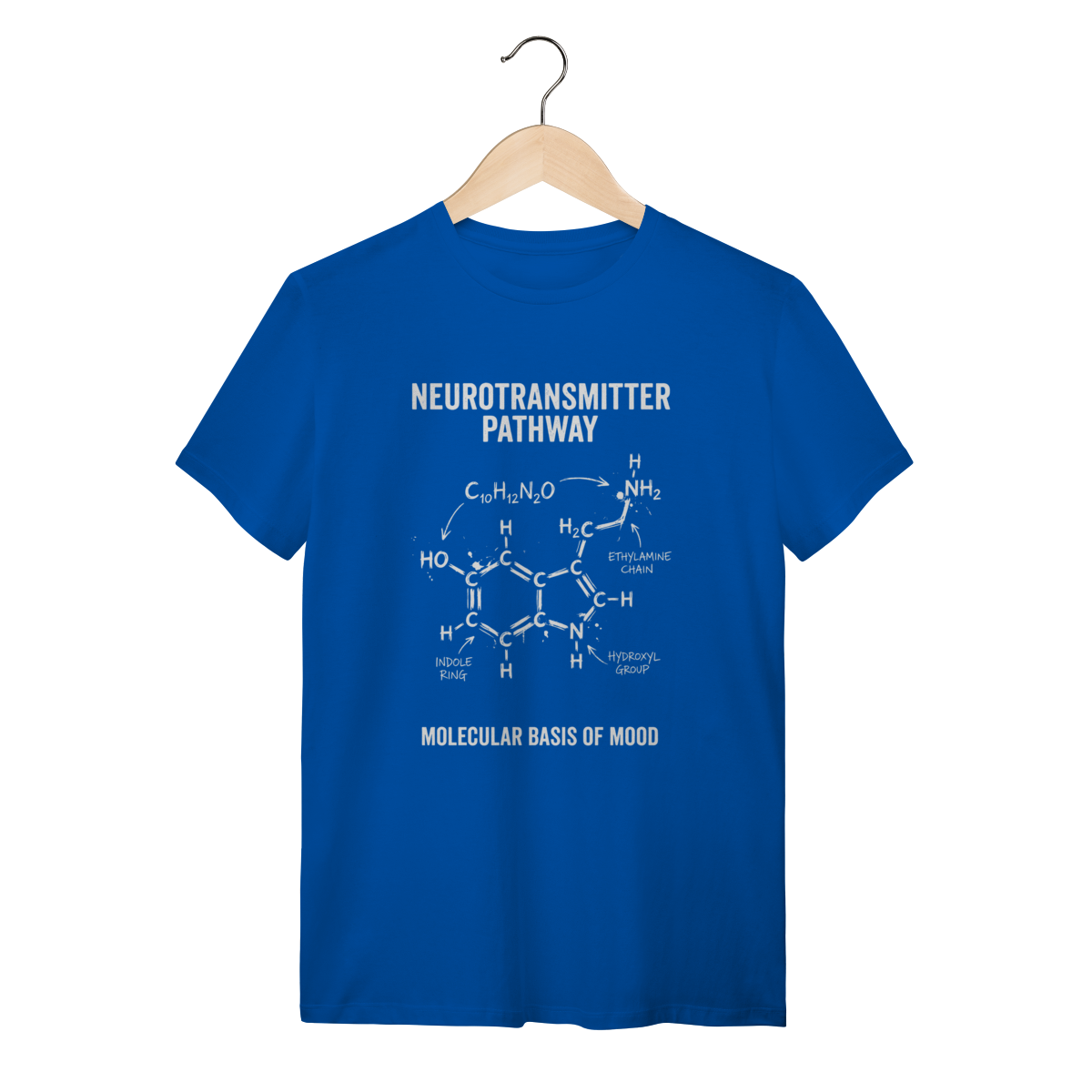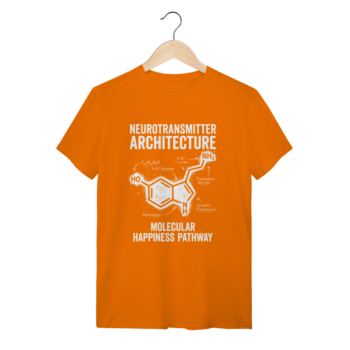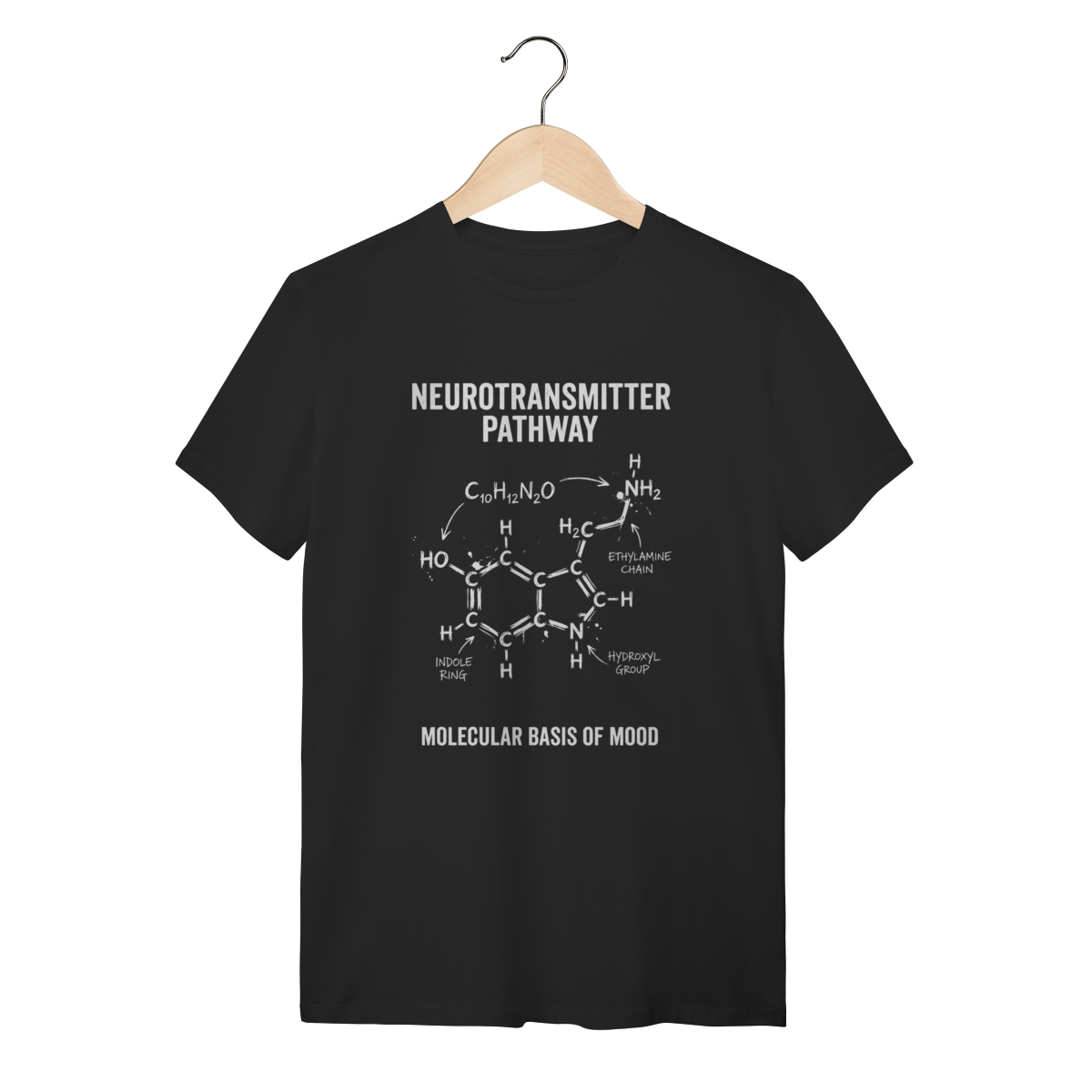 Você não precisa explicar o que te faz feliz; você carrega a fórmula no peito. Esta peça não é apenas sobre química, é sobre entender os mecanismos profundos que regem a mente humana. Ao vestir a serotonina, você se conecta instantaneamente a um clube exclusivo de intelectuais, cientistas, estudantes e entusiastas que valorizam o conhecimento acima da média. É a representação visual da alegria, da estabilidade e da inteligência, perfeita para quem sabe que a verdadeira felicidade é uma reação química complexa e fascinante.