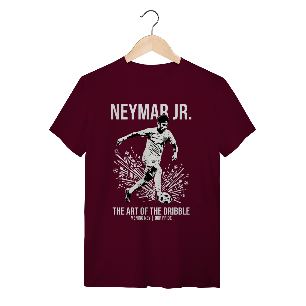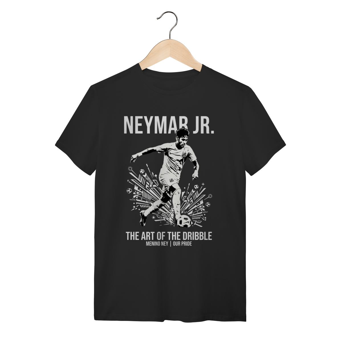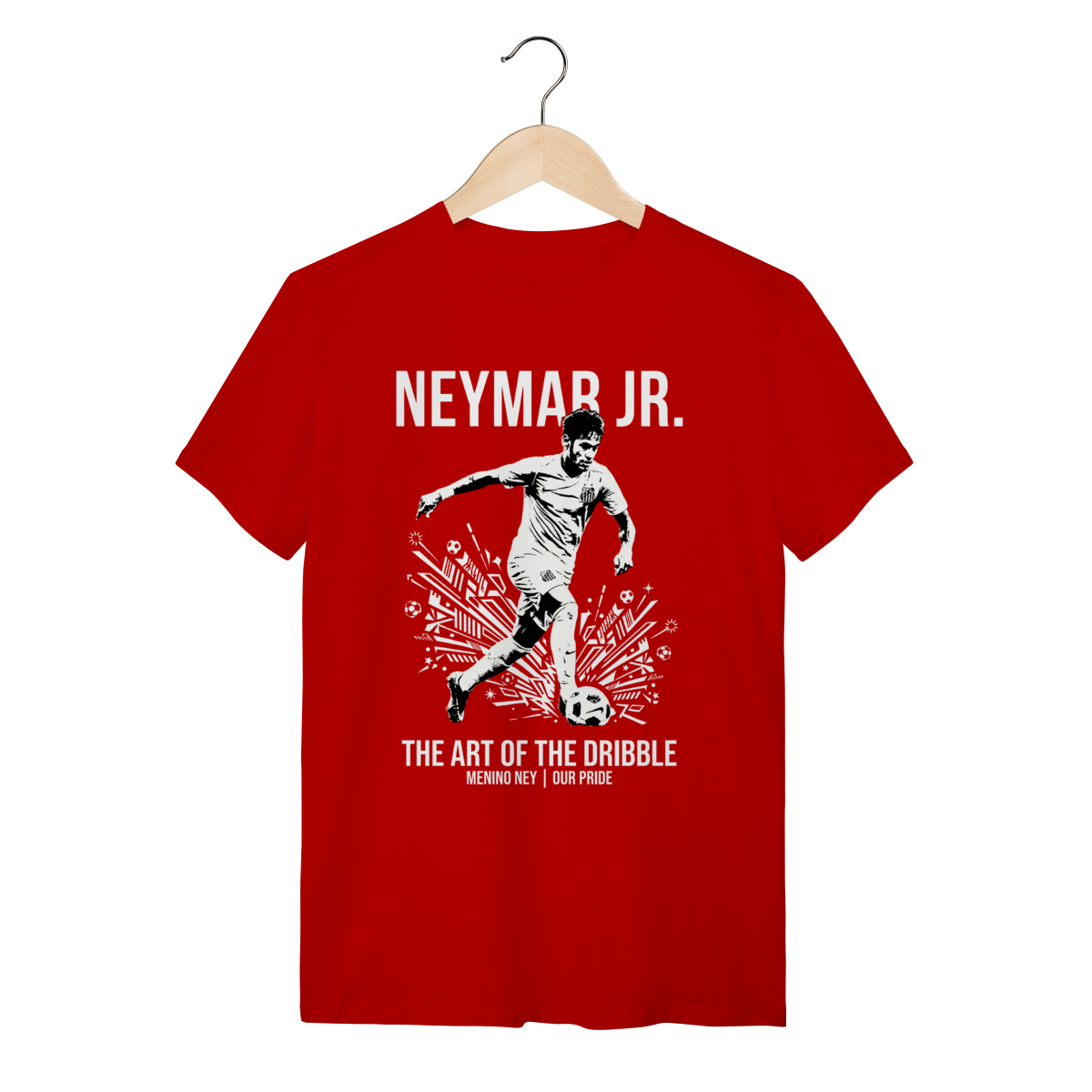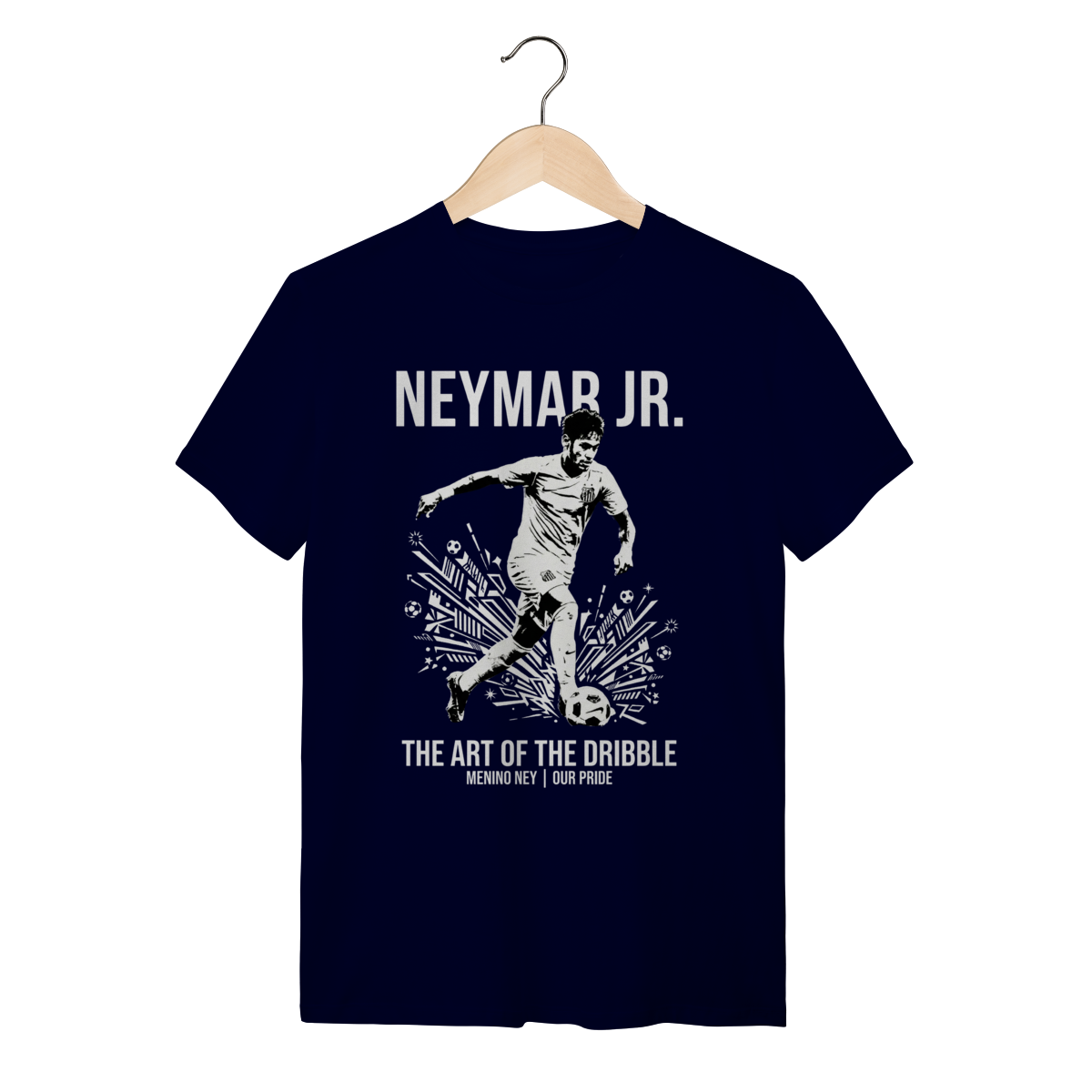 Você não está apenas olhando para uma camiseta, você está diante de um manifesto de liberdade. Esta peça captura a essência crua do "Menino Ney" na época em que ele reescreveu as leis da física nos gramados brasileiros.