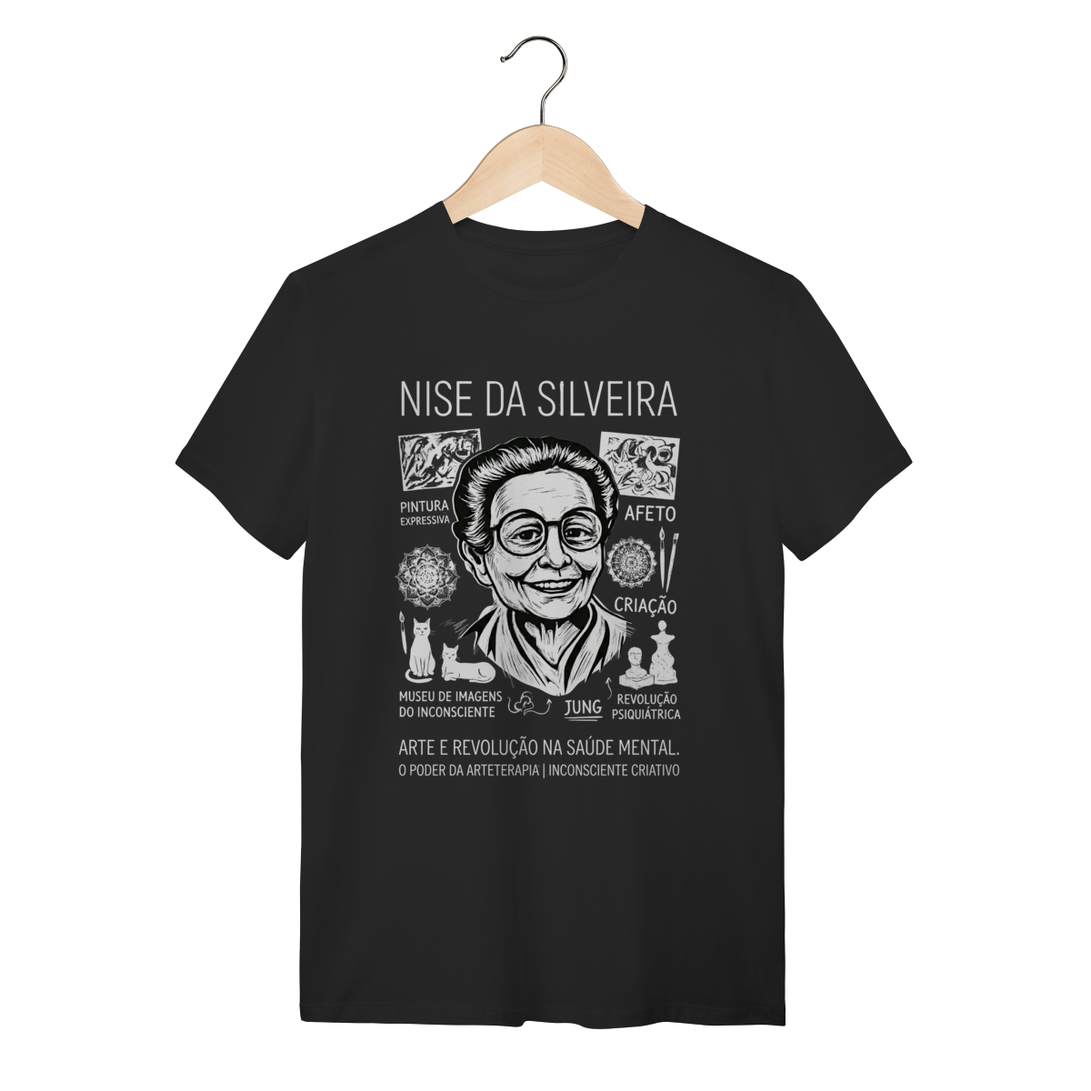 • Design Exclusivo: Arte sofisticada em Stipple Art que homenageia o legado humanista e científico de Nise da Silveira.