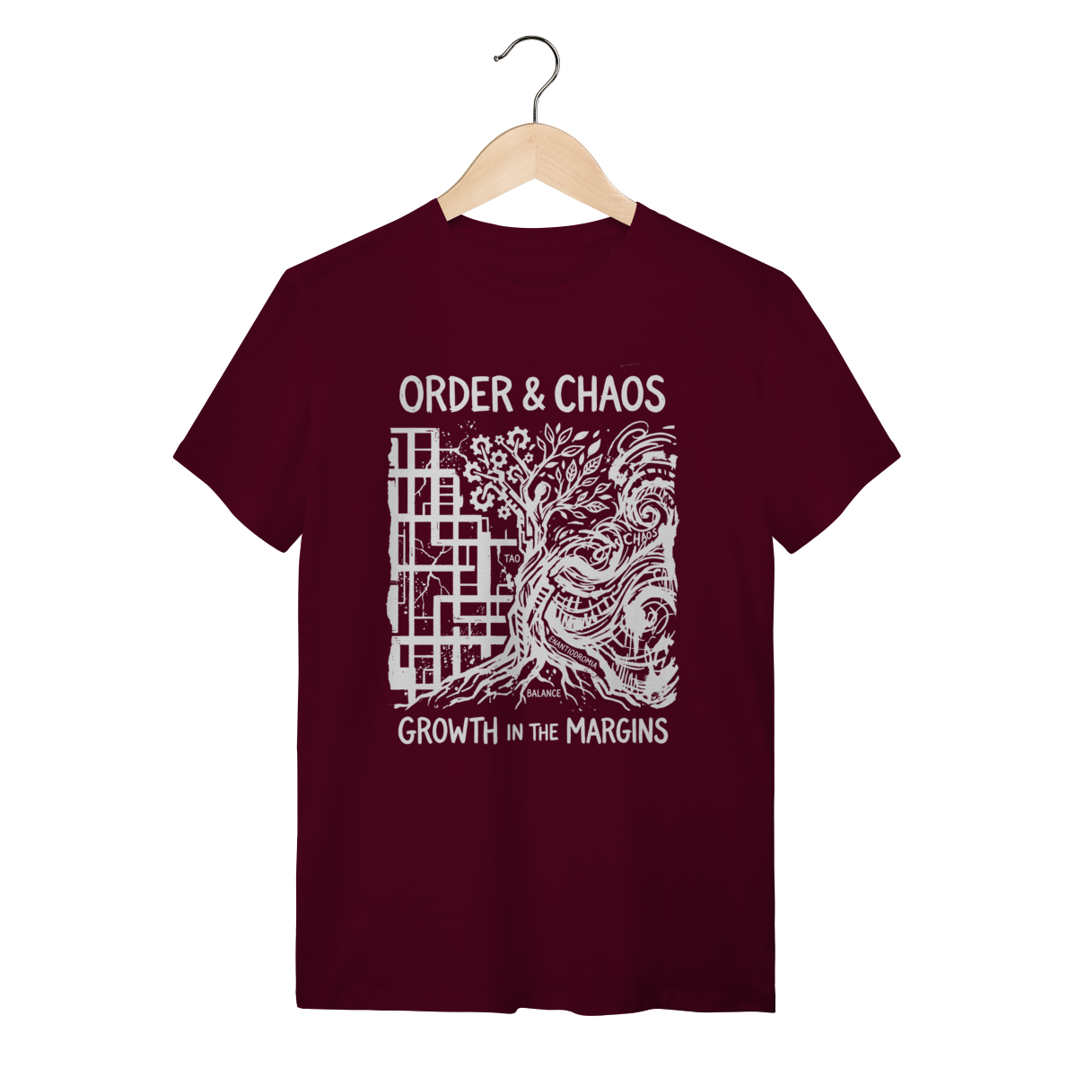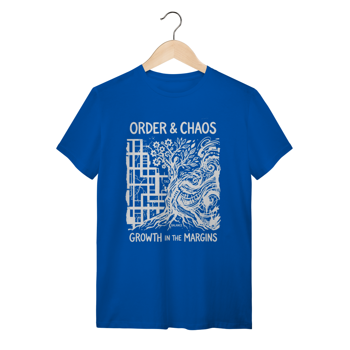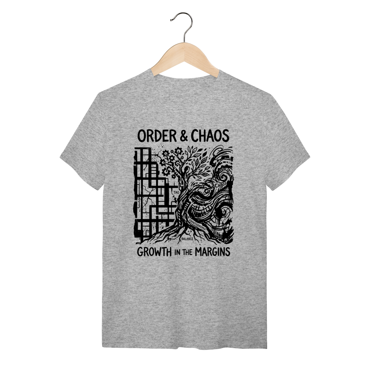 A vida não acontece nos extremos, mas na tensão entre eles. Esta estampa não é apenas um design; é um manifesto visual para quem entende que a sabedoria reside no equilíbrio. Inspirada nos conceitos de Jung (Enantiodromia) e na filosofia oriental (Tao), ela representa a dança eterna entre a ordem rígida e o caos criativo. Vista a complexidade da mente humana e mostre ao mundo que você enxerga além do óbvio.