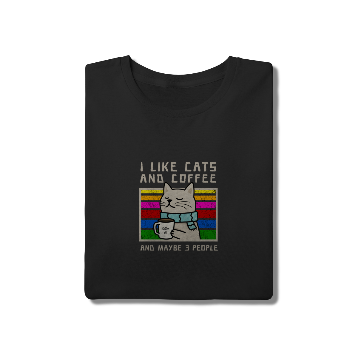 Camiseta Preta, Camiseta Básica, Gato e Café, I Like Cats, Humor Geek, Moda Streetwear, Presente Criativo, Algodão 30.1, Camiseta Unissex, Quality Premium, Cat Lover, Roupa Confortável
