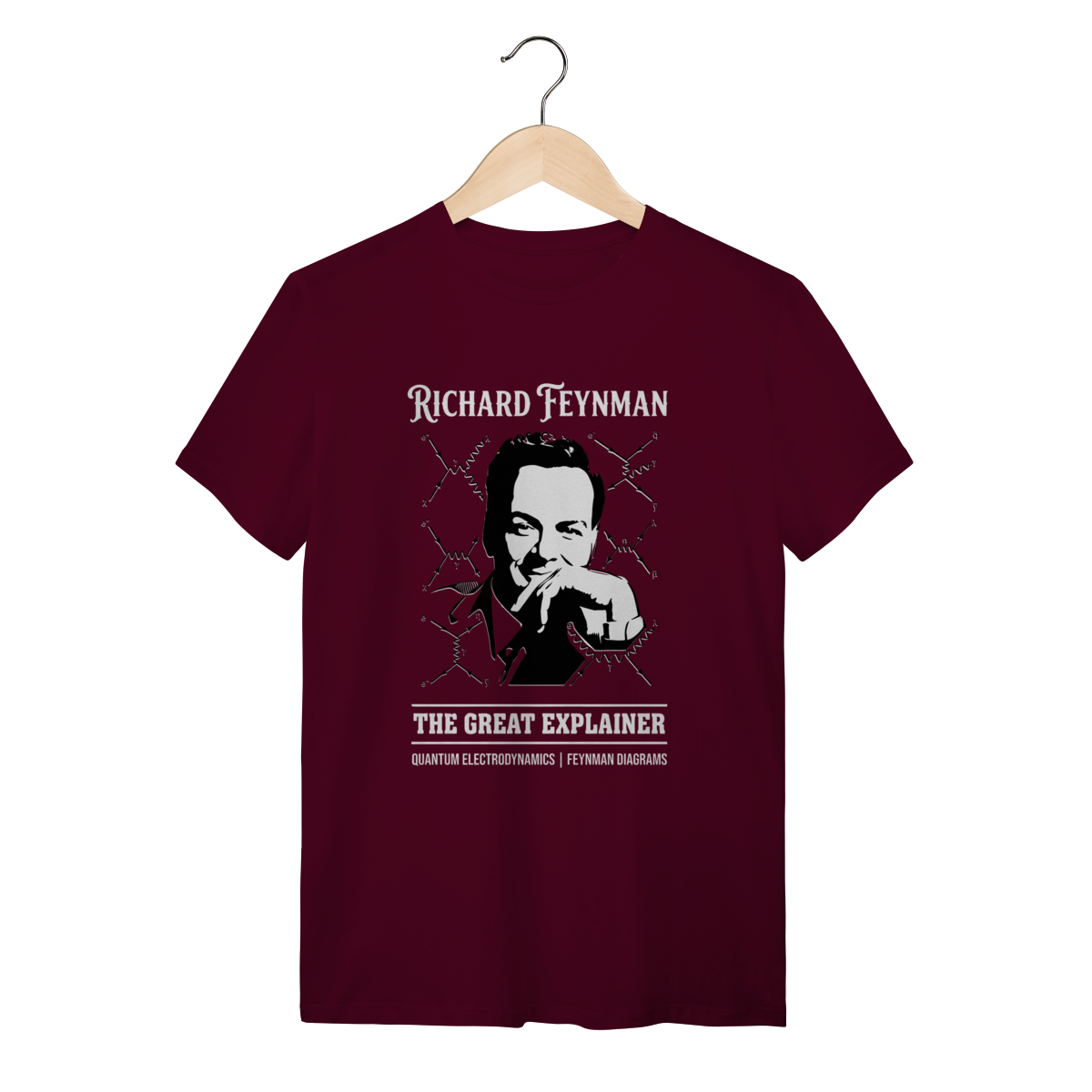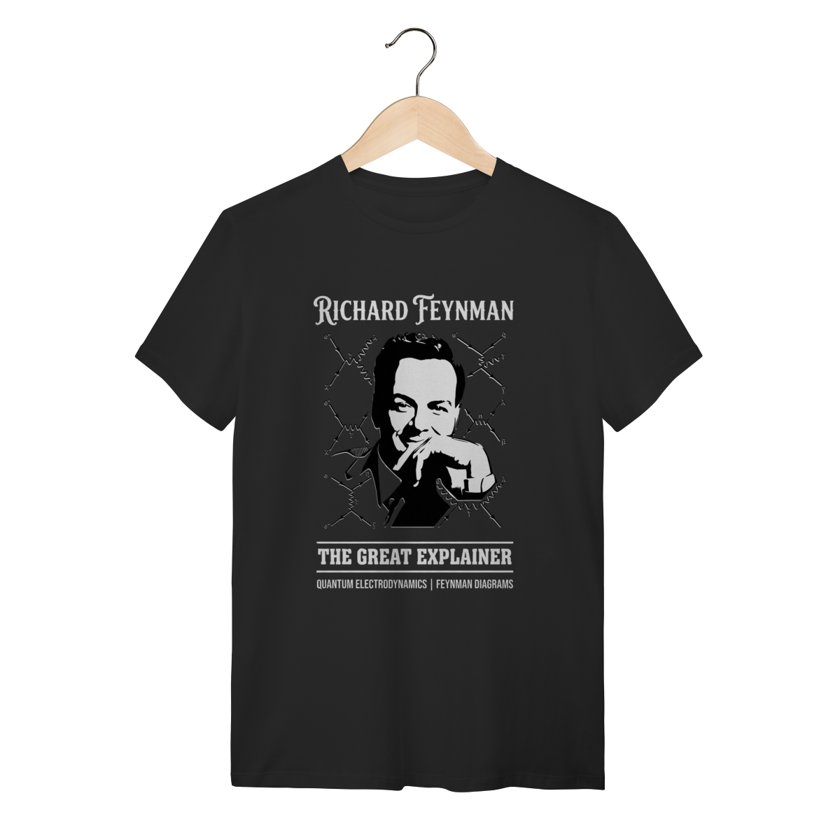 • Design Exclusivo: Arte sofisticada em Stipple Art que homenageia a clareza e o brilhantismo pedagógico de Feynman.