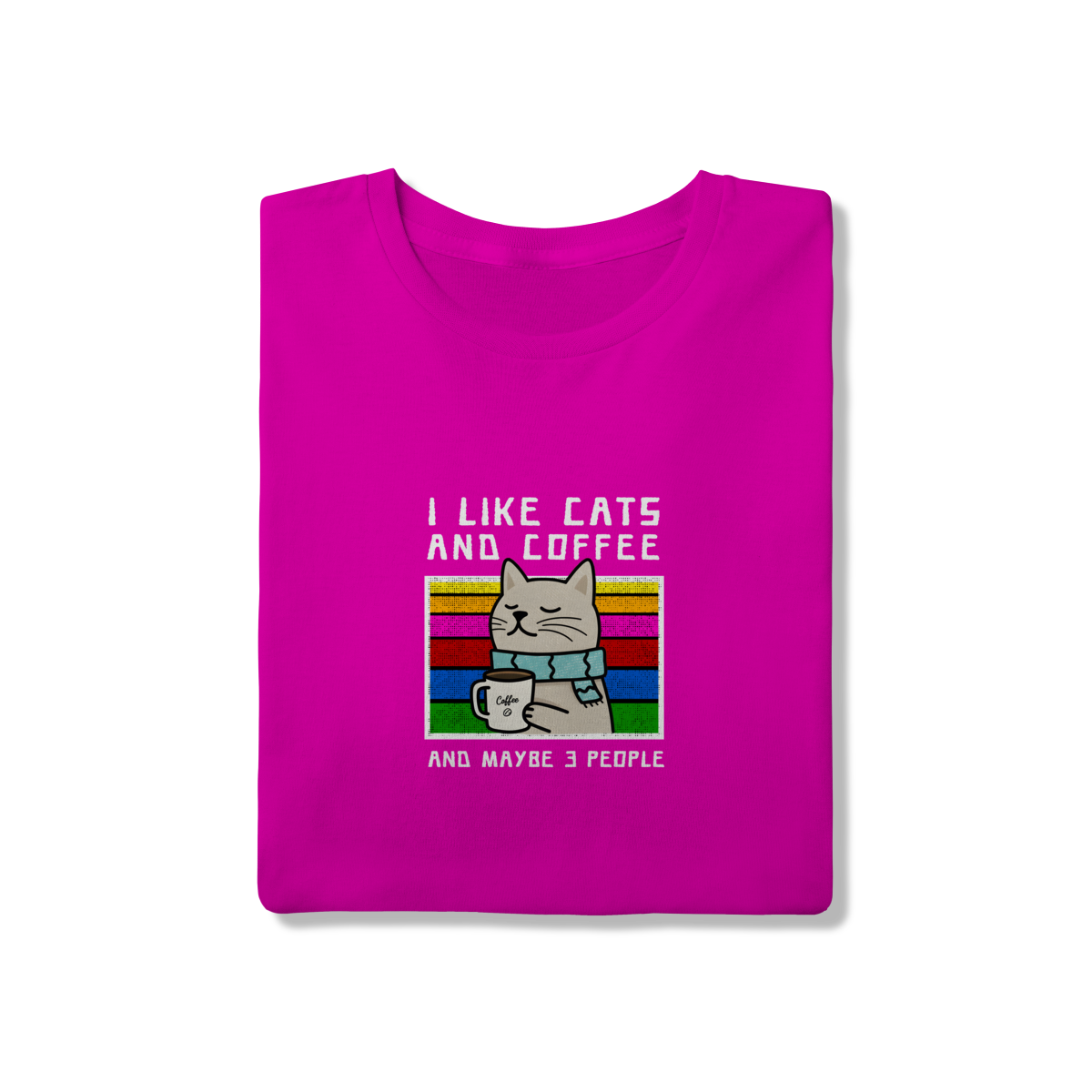 Camiseta Rosa Pink Gato E Café - Estampa Divertida 30.1