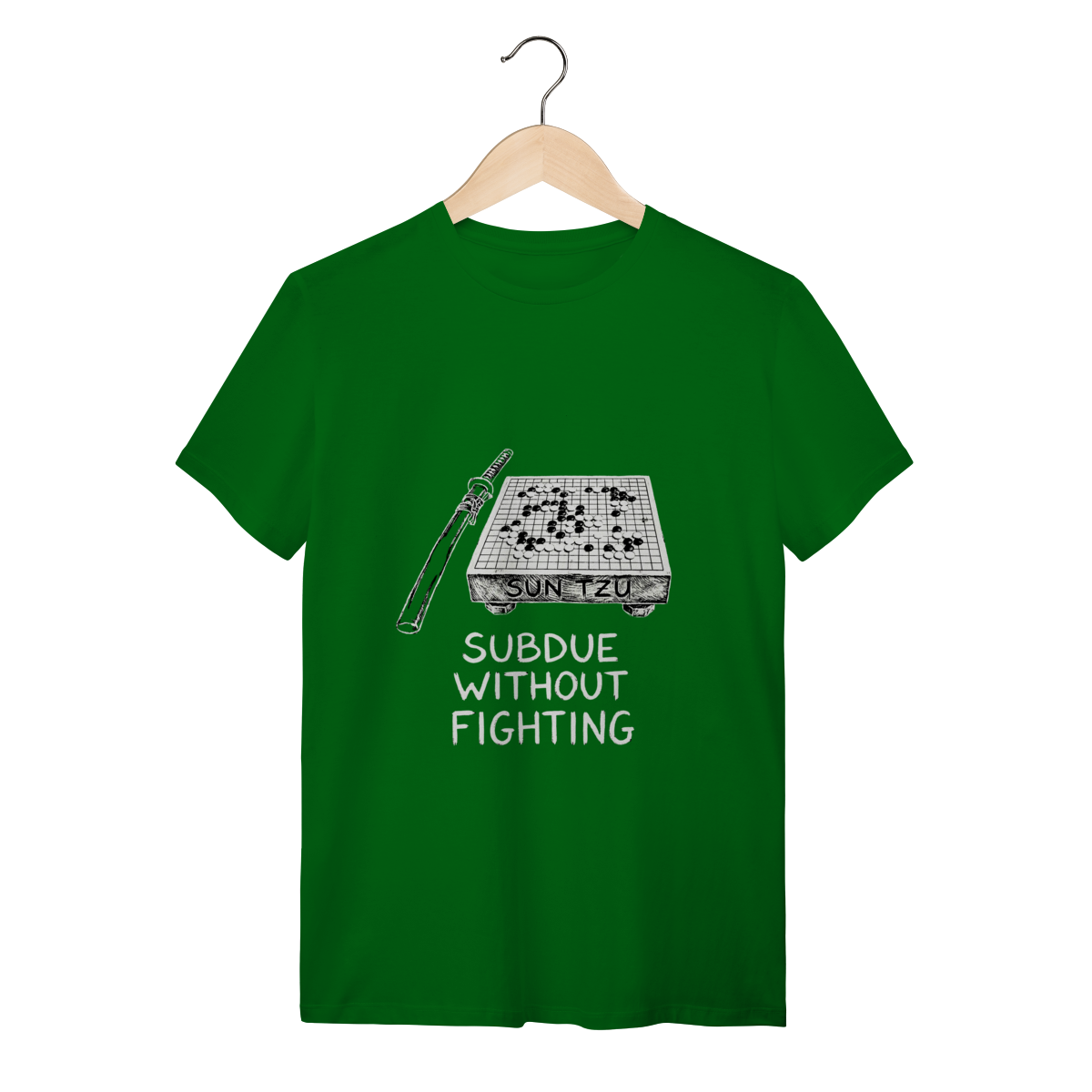 Subdue Without Fighting (Rosa/Verde): O tabuleiro de Go e a espada embainhada (a vitória sem sangue).