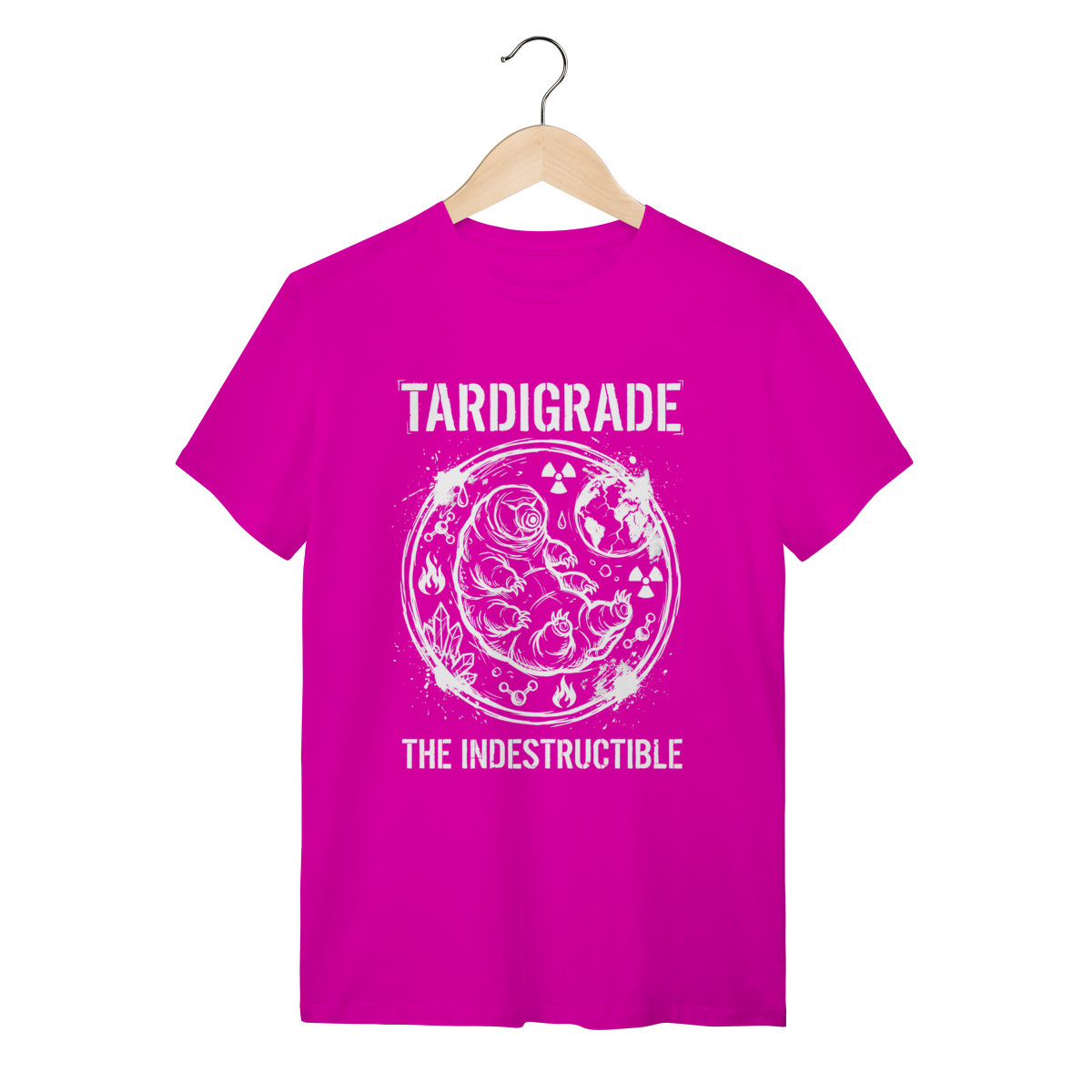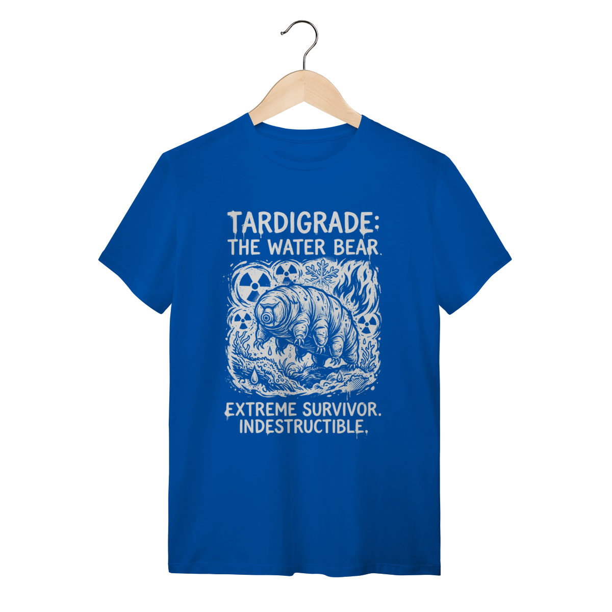 O Tardígrado não é apenas um animal; é um símbolo de tenacidade absoluta. Conhecido como "Urso D'água", esse titã microscópico sobrevive a radiação, temperaturas extremas e até ao espaço sideral. Vestir esta estampa é carregar no peito o emblema da sobrevivência, da adaptação e da força que existe onde os olhos nus não alcançam. É para quem valoriza a ciência, a biologia e a incrível capacidade da vida de persistir contra todas as probabilidades.