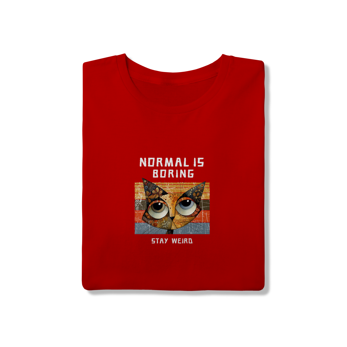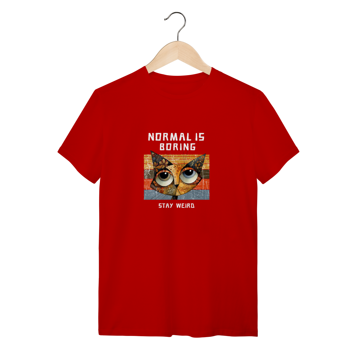 Camiseta Vermelha, Camiseta Red, Gato Normal Is Boring, Stay Weird, Frase Sarcástica, Moda Casual, Presente Criativo, Algodão 30.1, Camiseta Unissex, Quality Premium, Cat Lover, Roupa Confortável