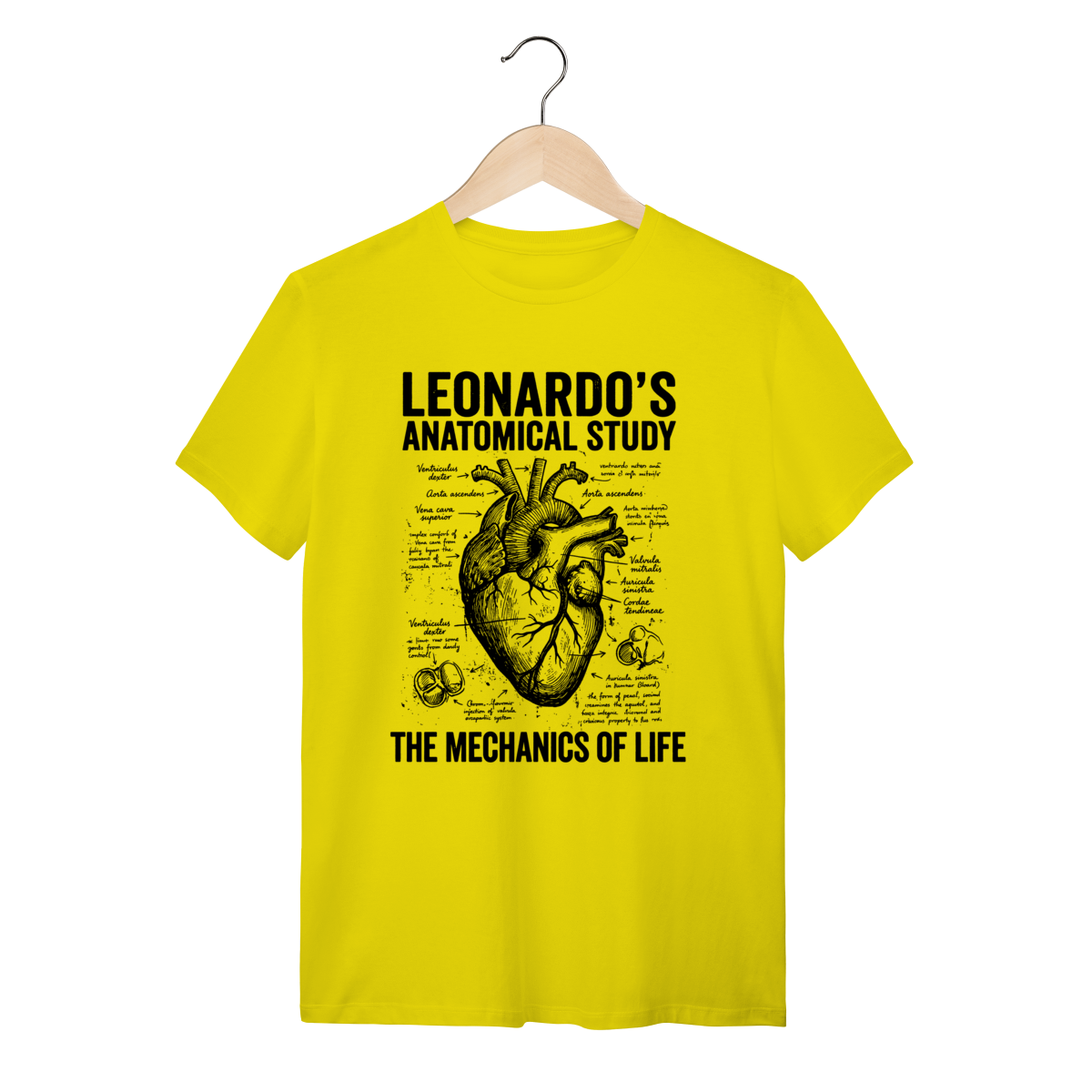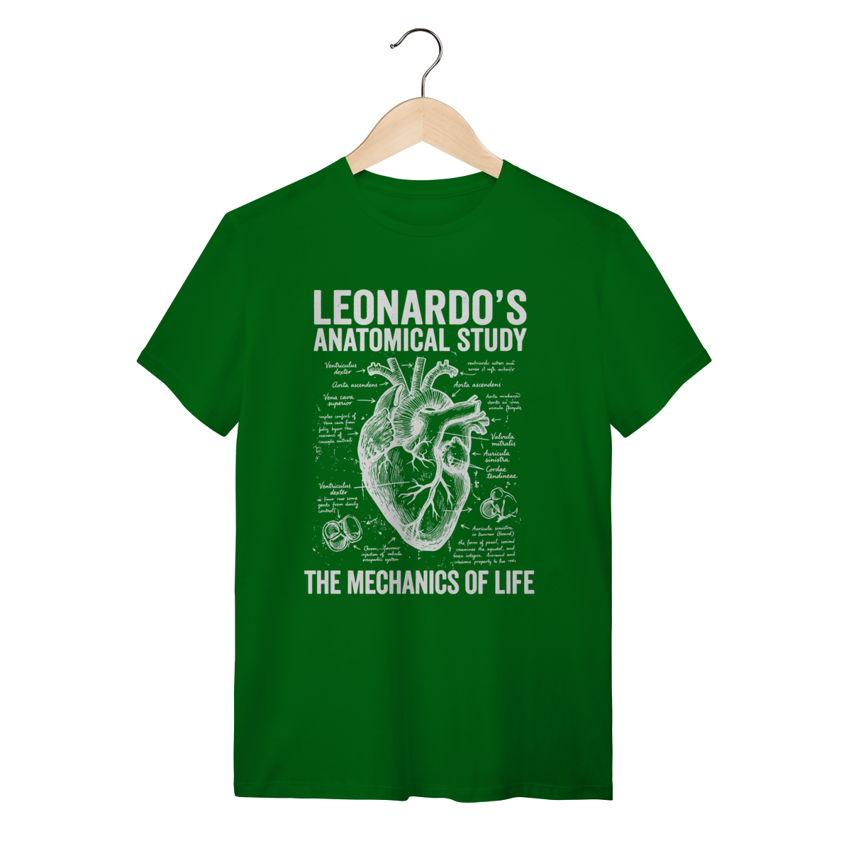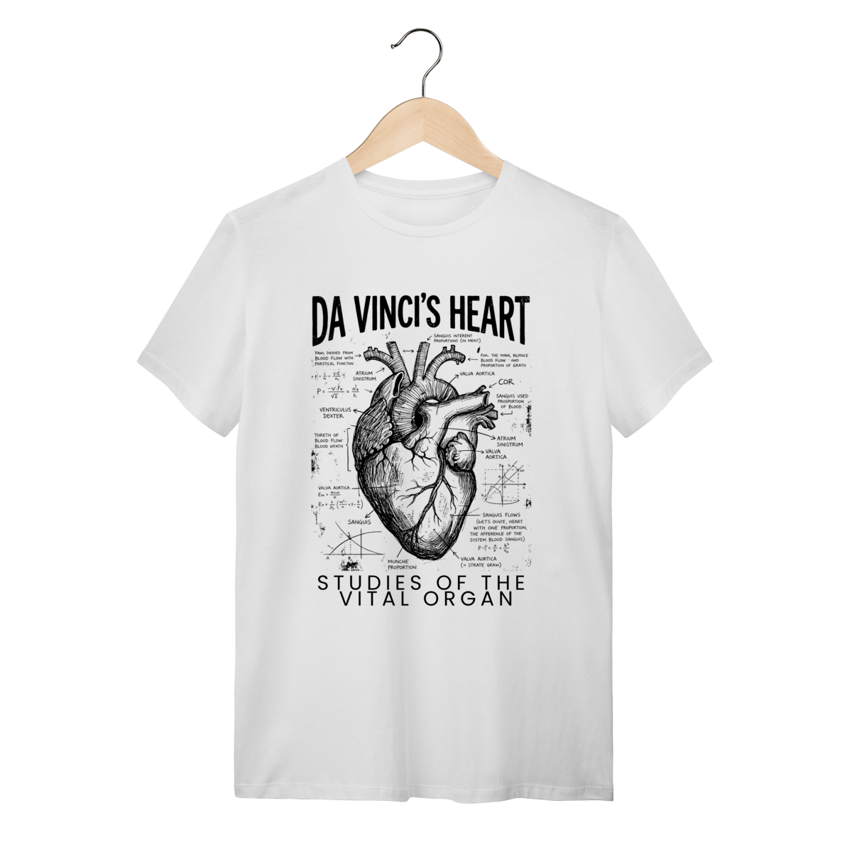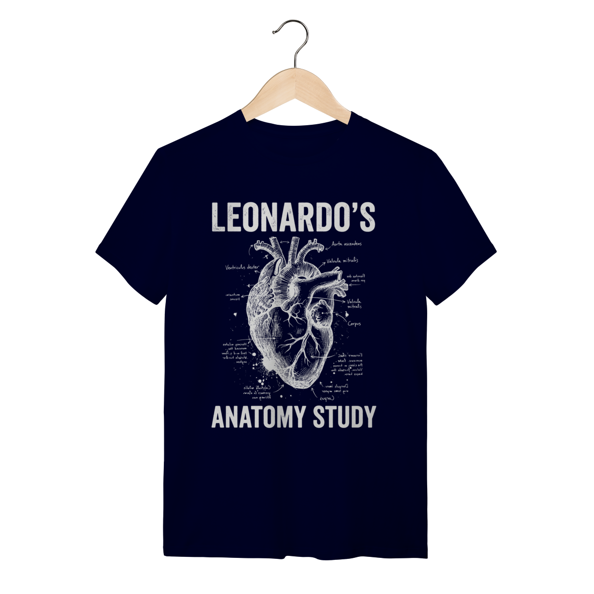 Leonardo da Vinci não via o corpo apenas como carne, mas como uma máquina divina de engenharia perfeita. Ao vestir esta estampa, você não usa apenas uma ilustração; você carrega o legado do maior polímata da história, aquele que teve a coragem de olhar para dentro de nós e desenhar a verdade. É uma peça para quem entende que a verdadeira beleza reside na complexidade da vida e no funcionamento preciso do nosso ser.