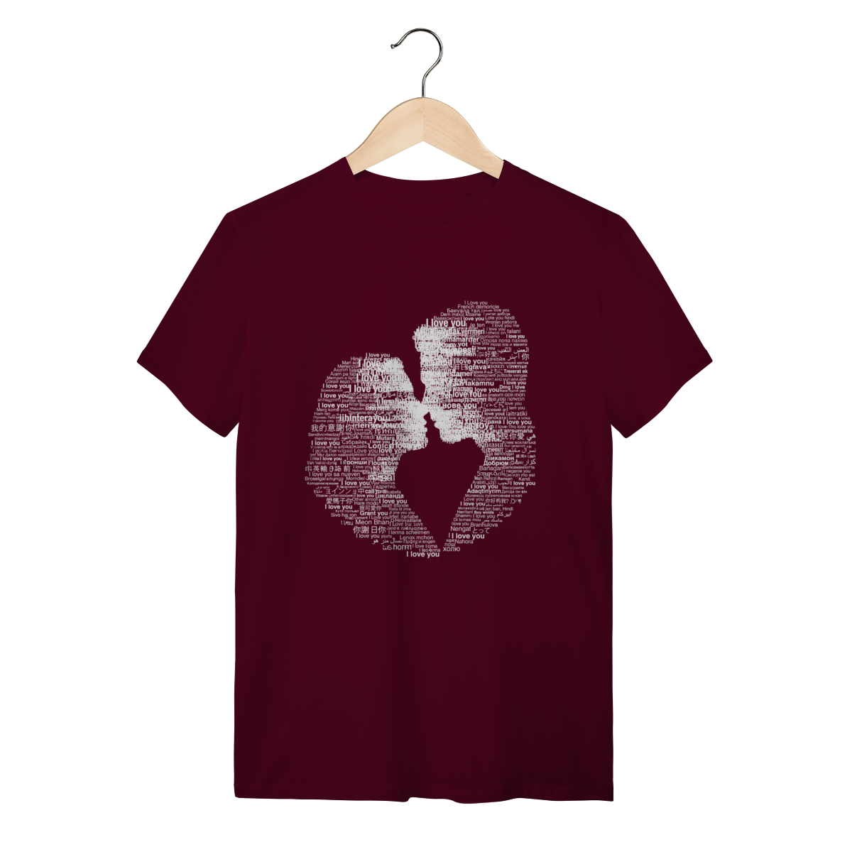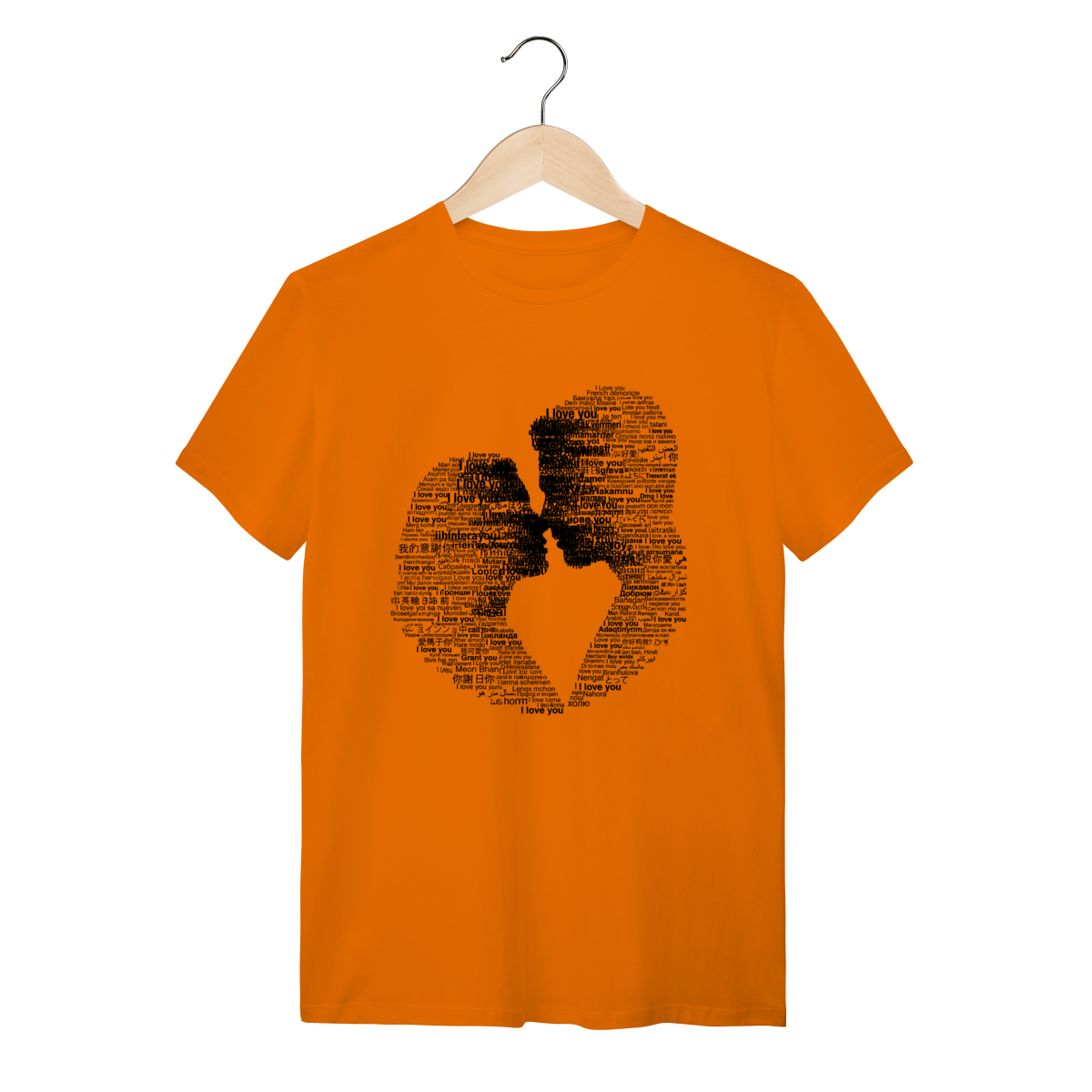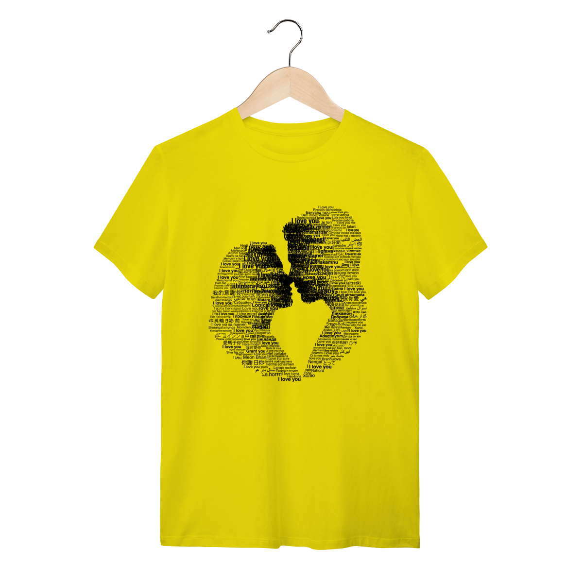 Design Exclusivo: Uma obra de arte tipográfica que transforma 100 traduções de amor na silhueta perfeita de um beijo apaixonado.